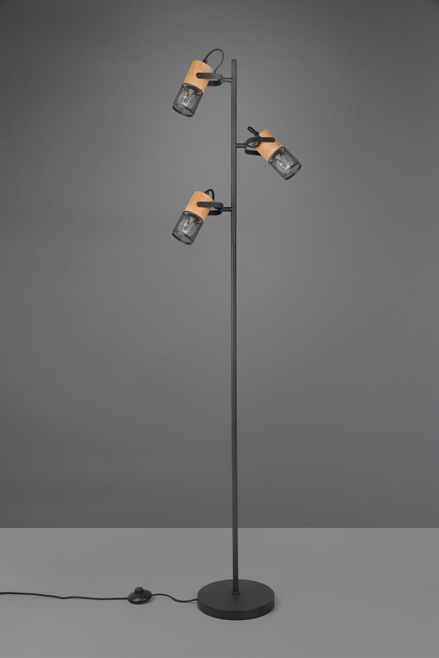 Lampadar Tosh, TRIO, 23x150 cm, 15W, 3x E14, metal, negru mat/natur