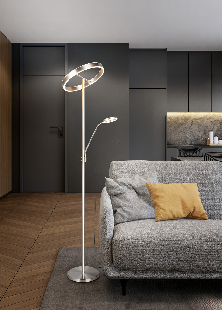Lampadar Willis, TRIO, 40x180 cm, 39W/5.5W, 2x SMD, metal, nichel mat