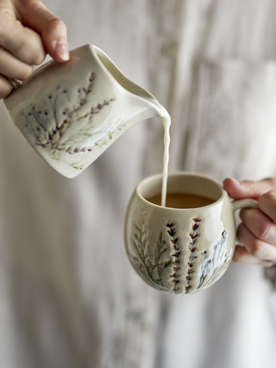 Latiera, Bloomingville, Bea, 8x9 cm, 250 ml, ceramica, natural