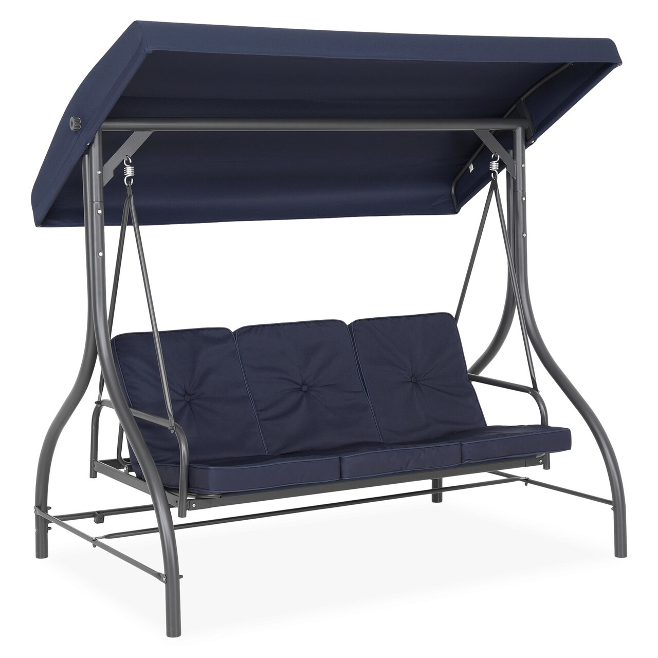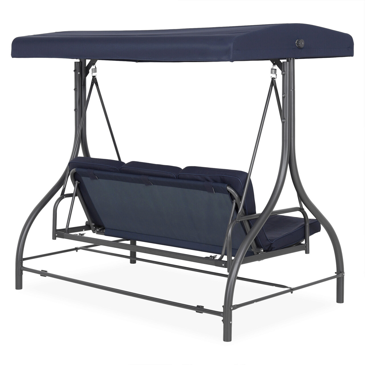 Leagan 3 locuri cu functie pat, Arianna, L.191.5 l.118 H.175 cm, otel, gri/albastru