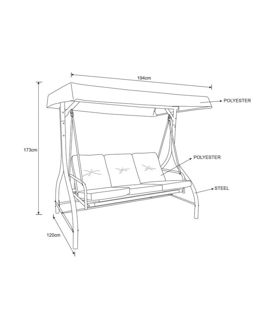 - Sezutul si spatarul leaganului sunt realizate din poliester rezistent la apa si impotriva decolorarii.