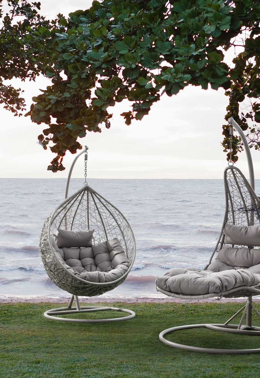 Leagan de gradina/terasa Amirantes, Bizzotto, Ø108 x 198 cm, otel/fibre sintetice, perne din poliester, gri