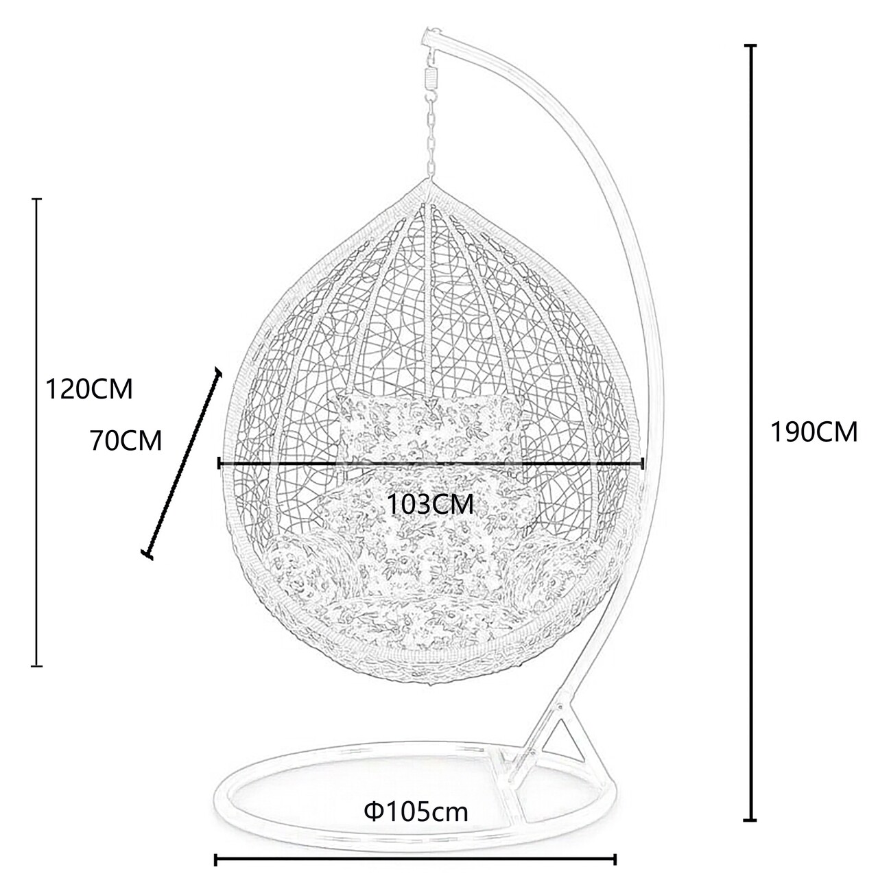 - Diametrul bazei este de 100 cm.