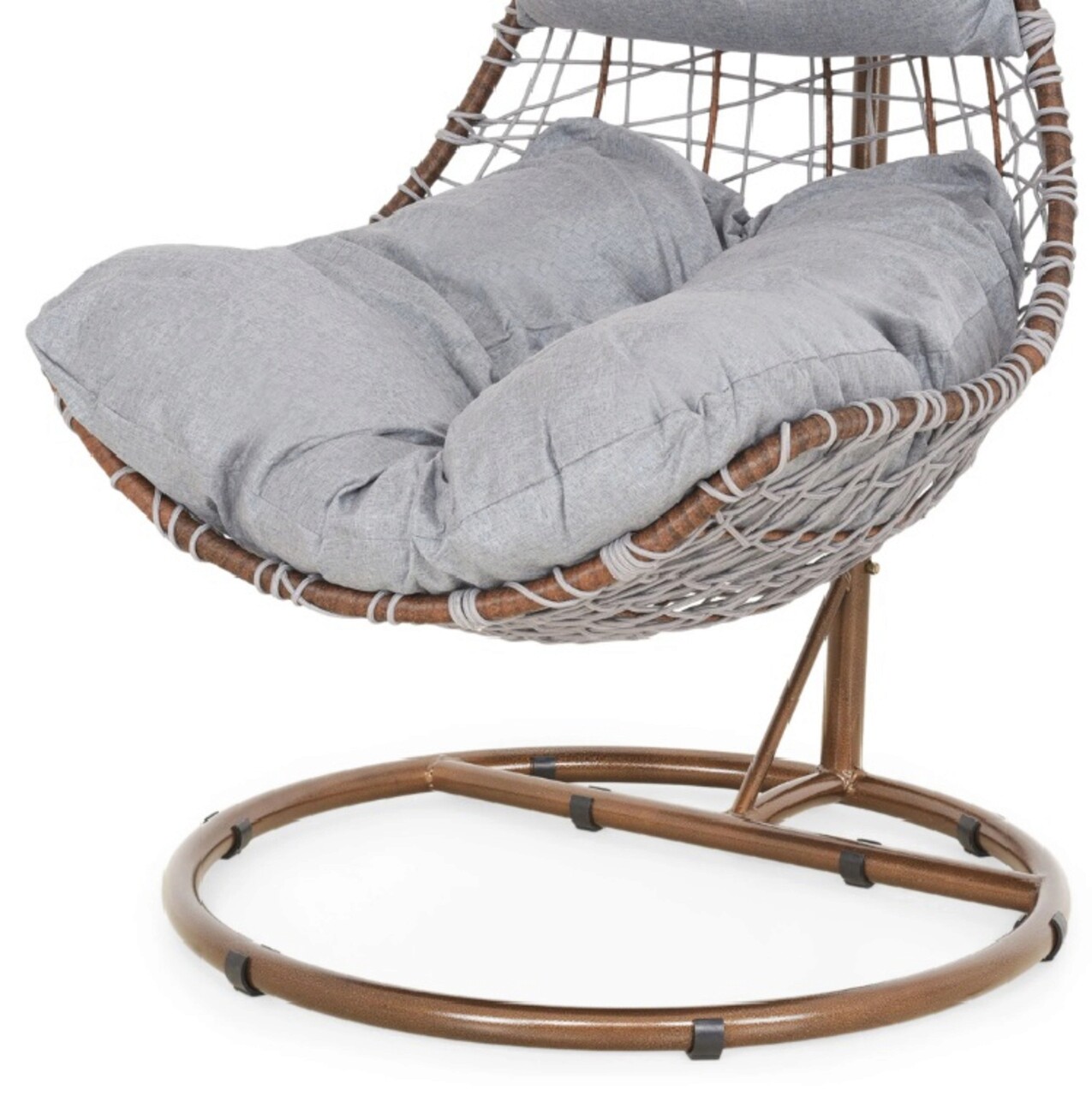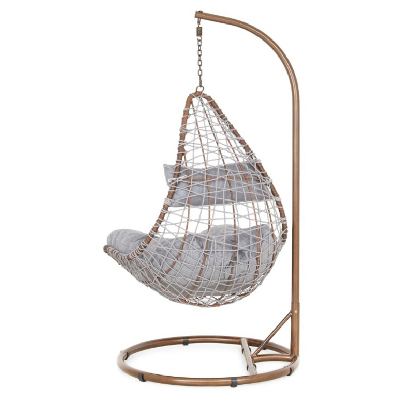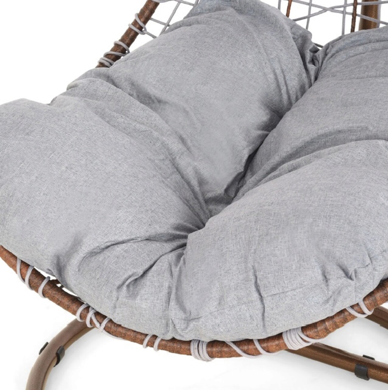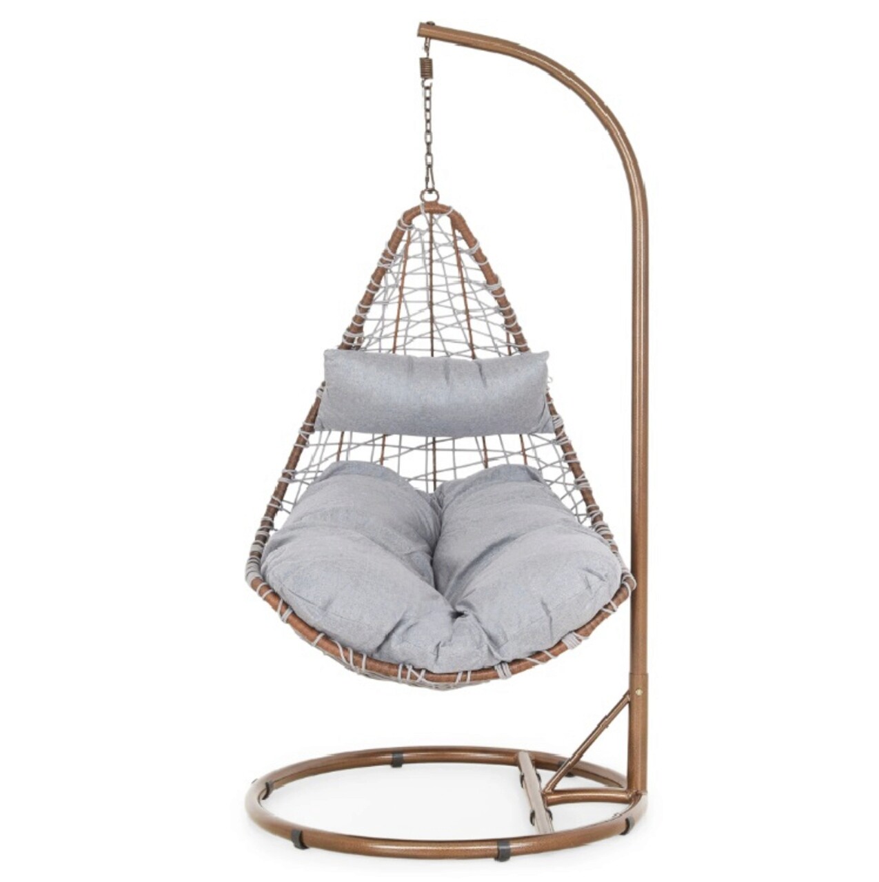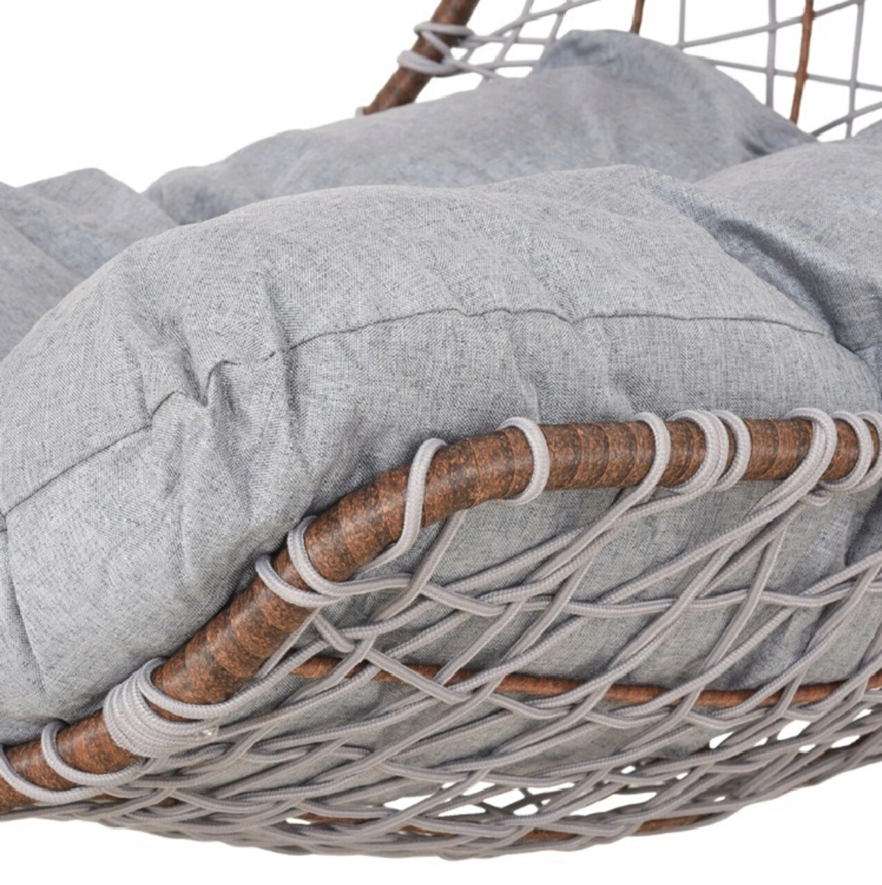 Realizat din structura din otel vopsit in camp electrostatic si impletit cu fibre din poliester ce imita funia cu protectie UV. Include perna din poliester.