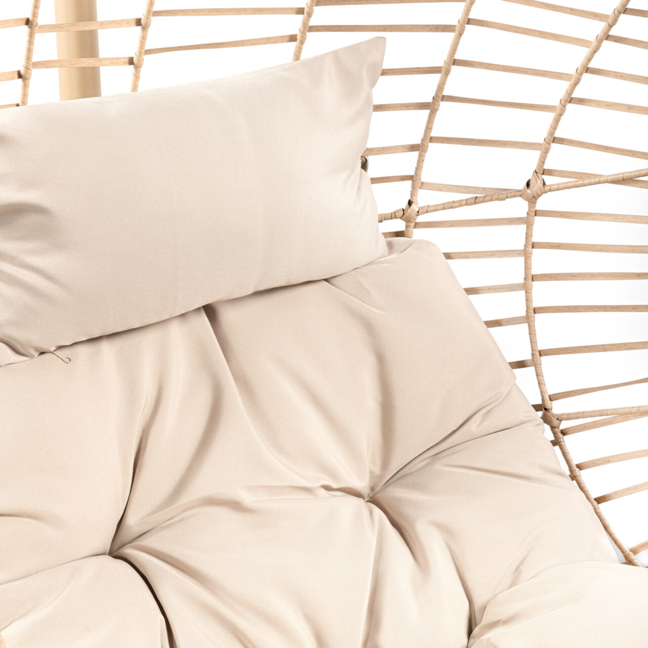 Cadrul leaganului este realizat din metal care ofera stabilitate intregii structuri. Elementele metalice sunt invelite in ratan. Materialele folosite sunt durabile si rezistente la deteriorari.