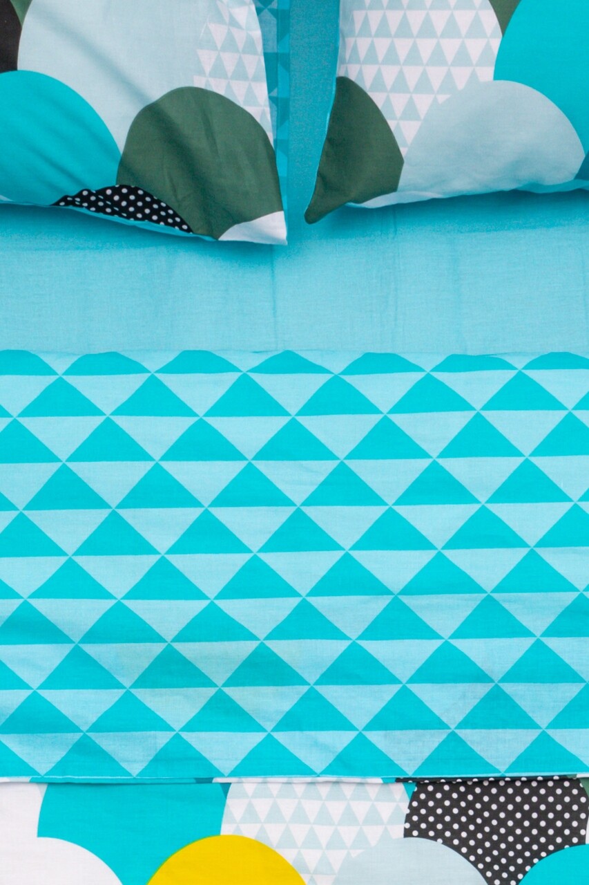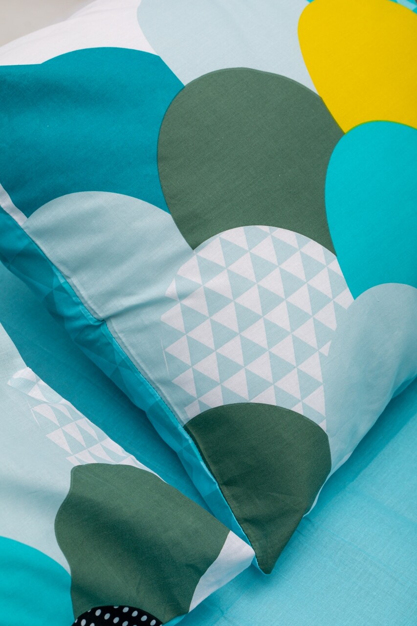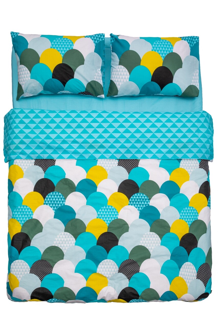 1 cearceaf de pat 220x240 cm, 1 cearceaf pentru pilota 200x220 cm si 2 fete de perna 50x70 cm