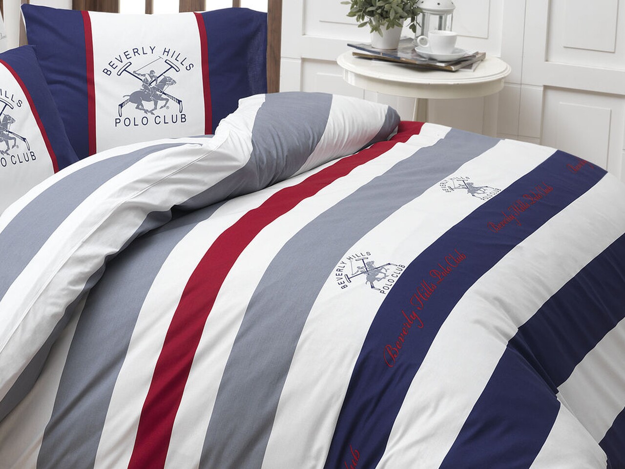 Lenjerie de pat dubla, 3 piese, 200x200 cm, 100% bumbac ranforce, Beverly Hills Polo Club, BHPC 001, albastru inchis