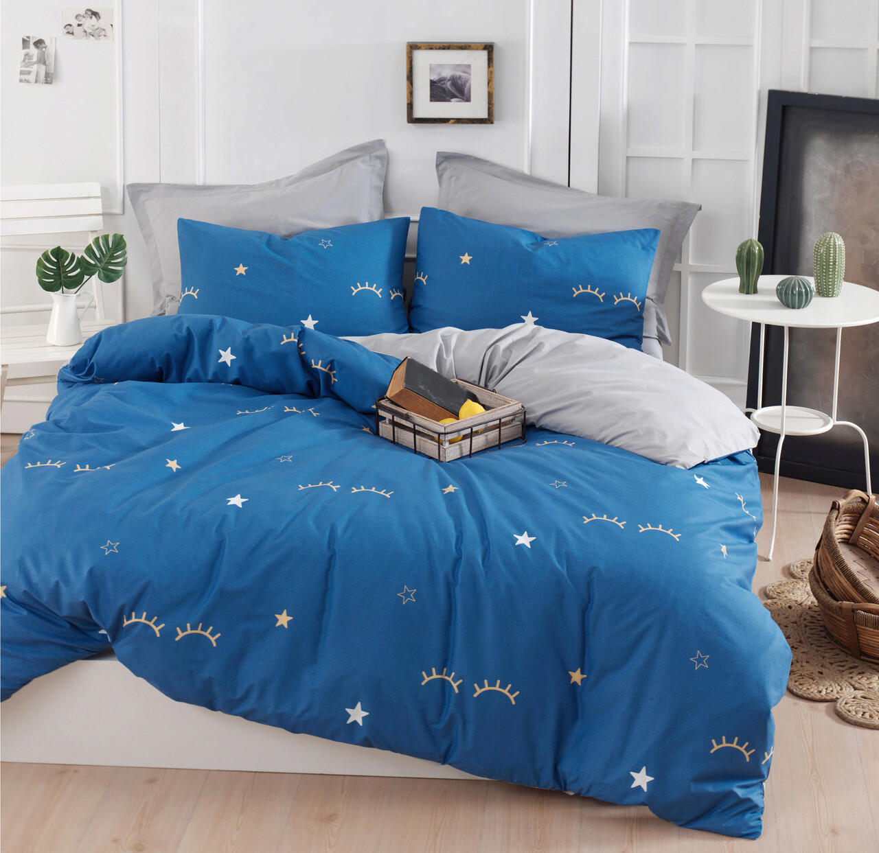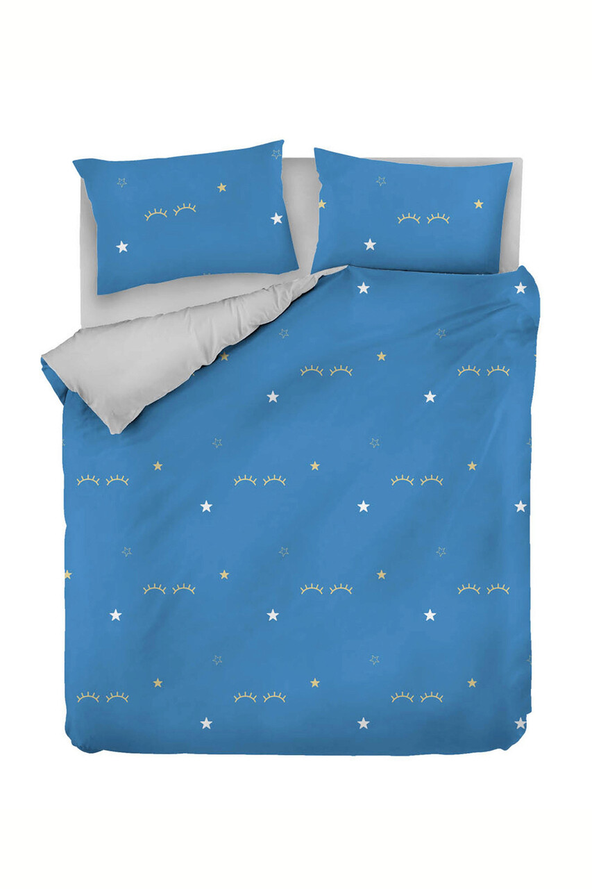 Lenjerie de pat dubla 3 piese, Dide - Blue, EnLora Home, Bumbac Ranforce