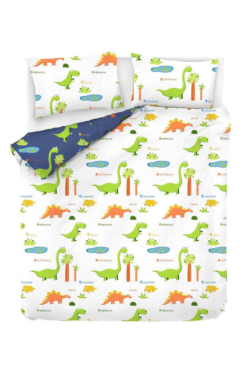 Lenjerie de pat dubla 3 piese, L'essentiel Maison, Dinolar, White / Dark Blue / Green / Orange / Yellow