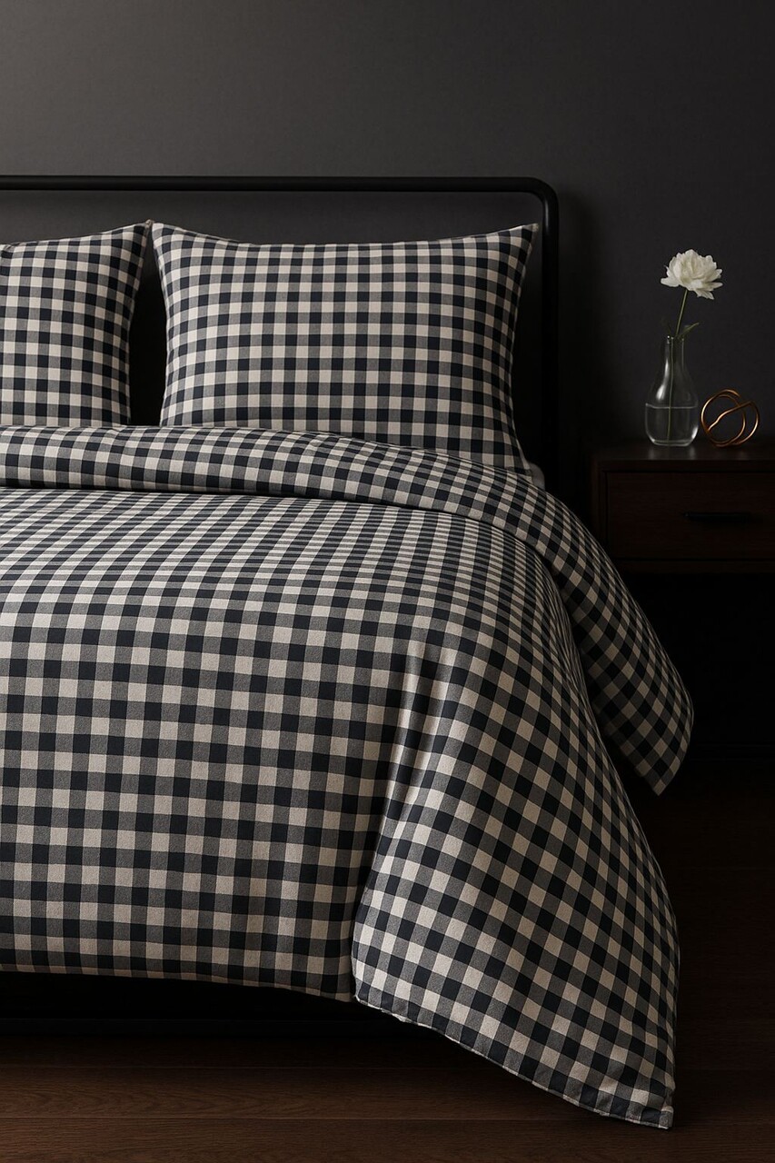 Lenjerie de pat dubla 3 piese, L'essentiel Maison, Petibor, Negru / Alb /