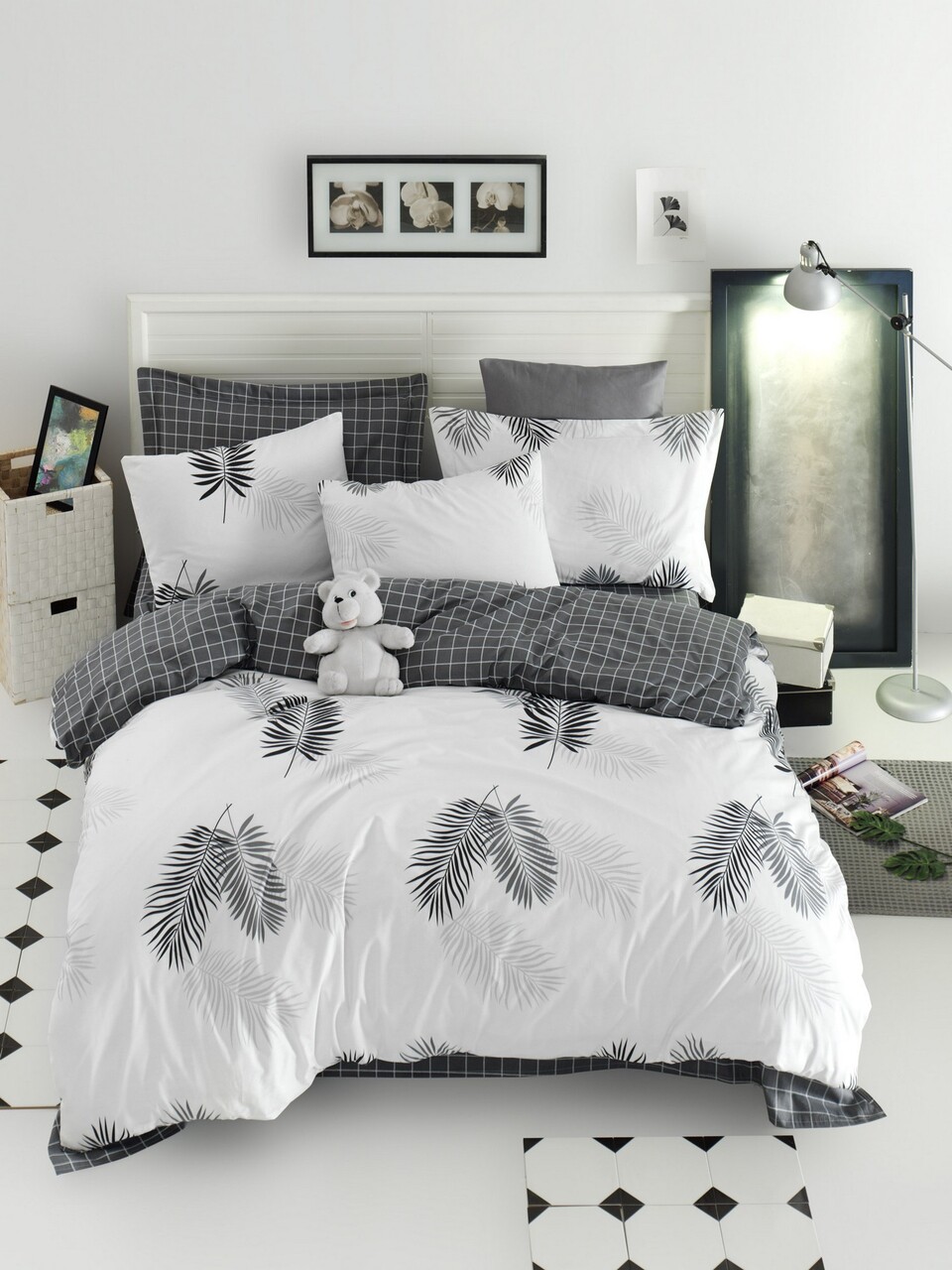 Lenjerie de pat dubla 3 piese, L'essentiel Maison, Pipong, 65% bumbac/35% poliester, Alb/Negru