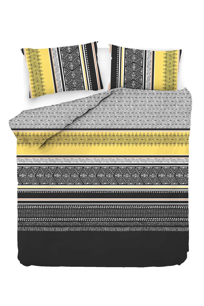 Lenjerie de pat dubla 3 piese, L'essentiel Maison, Formas, Yellow / Black / Grey