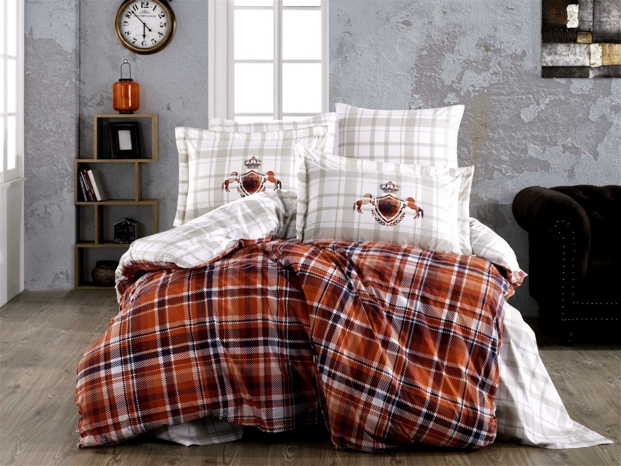 Lenjerie de pat dubla, 4 piese, 100% bumbac poplin, Hobby, Adalia Orange, multicolora