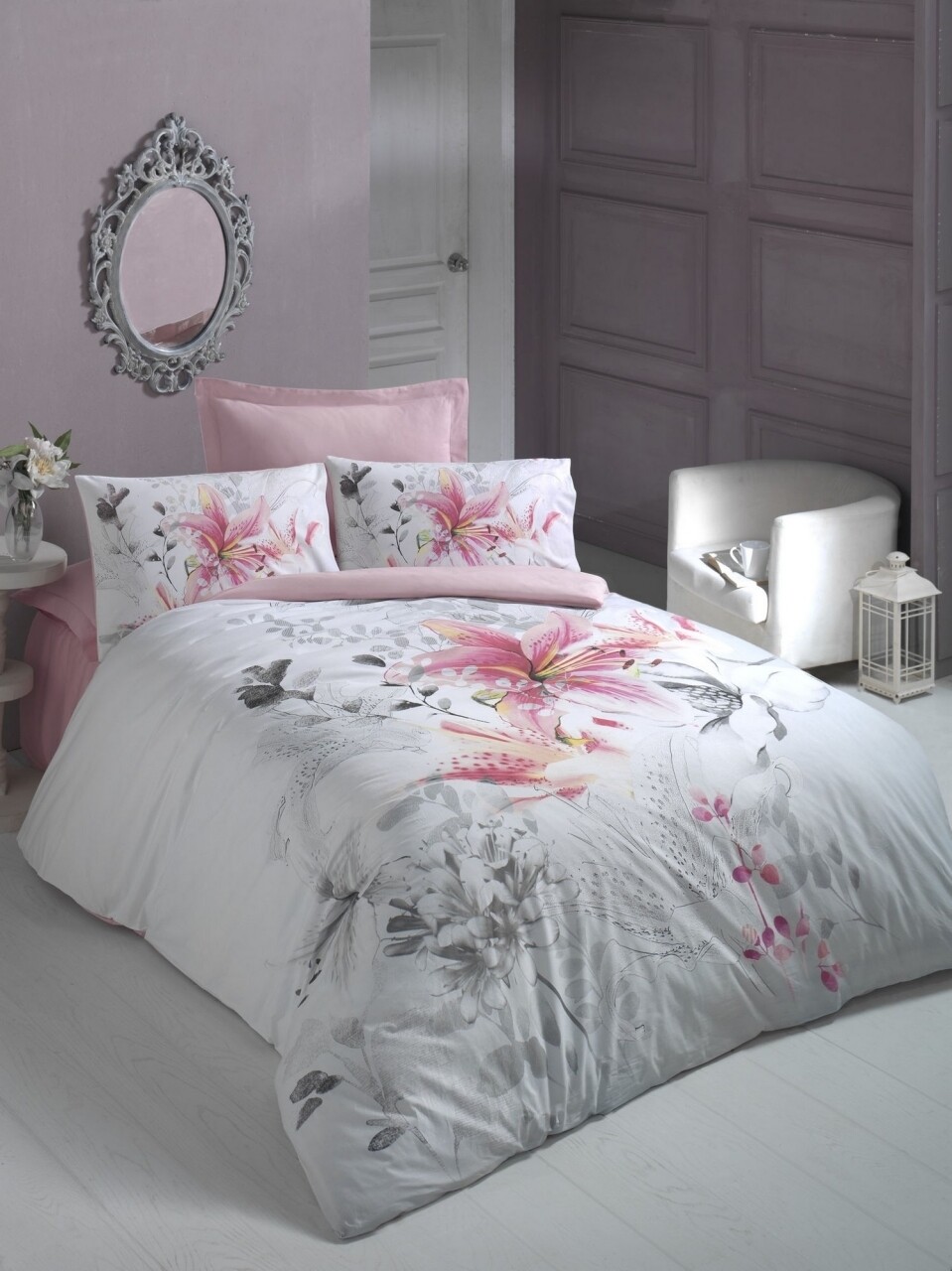 Lenjerie de pat dubla, 4 piese, 100% bumbac ranforce, Cotton Box, Iris