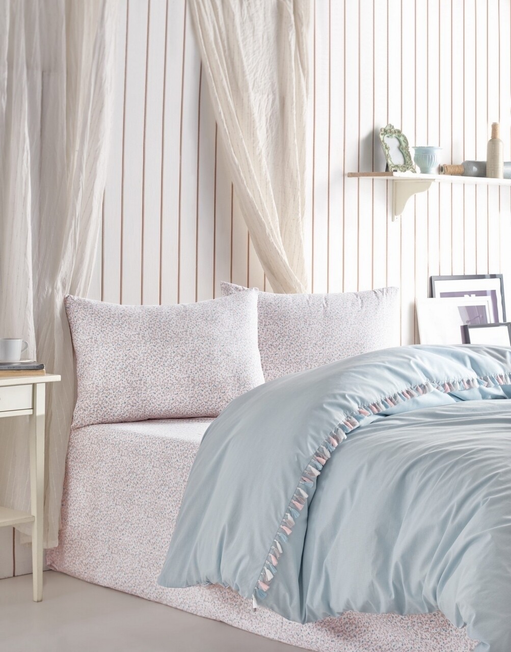 Lenjerie de pat dubla, 4 piese, 100% bumbac ranforce, Cotton Box, Rita Mint