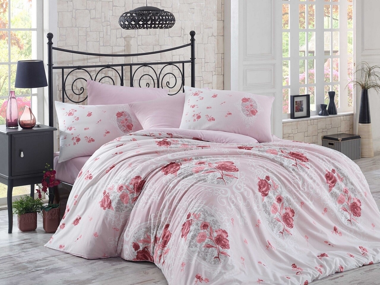 Lenjerie de pat dubla, 4 piese, 100% bumbac ranforce, Hobby, Matilde Dusty Rose, multicolor