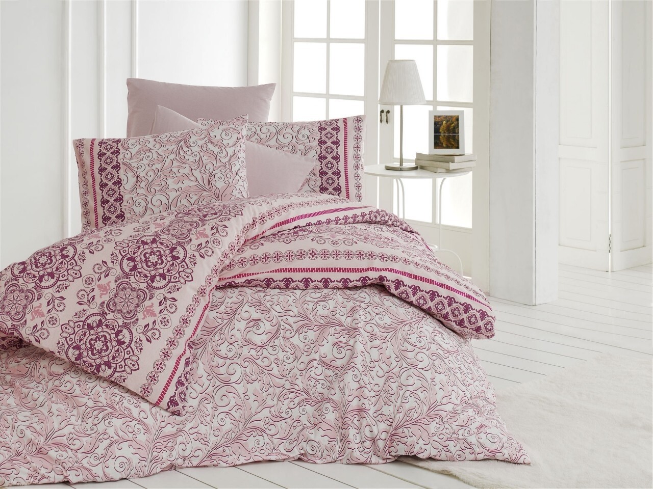 Lenjerie de pat dubla, 4 piese, 100% bumbac ranforce, Nazenin Home, Delhi Powder, roz