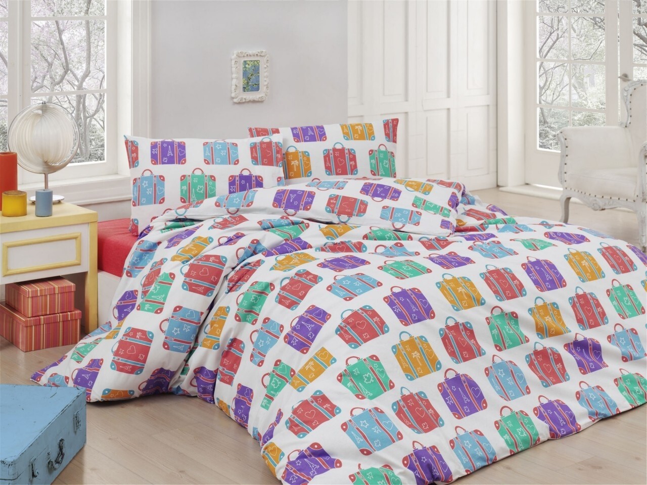 Lenjerie de pat dubla, 4 piese, 100% bumbac ranforce, Nazenin Home, Suitcase Color, multicolora