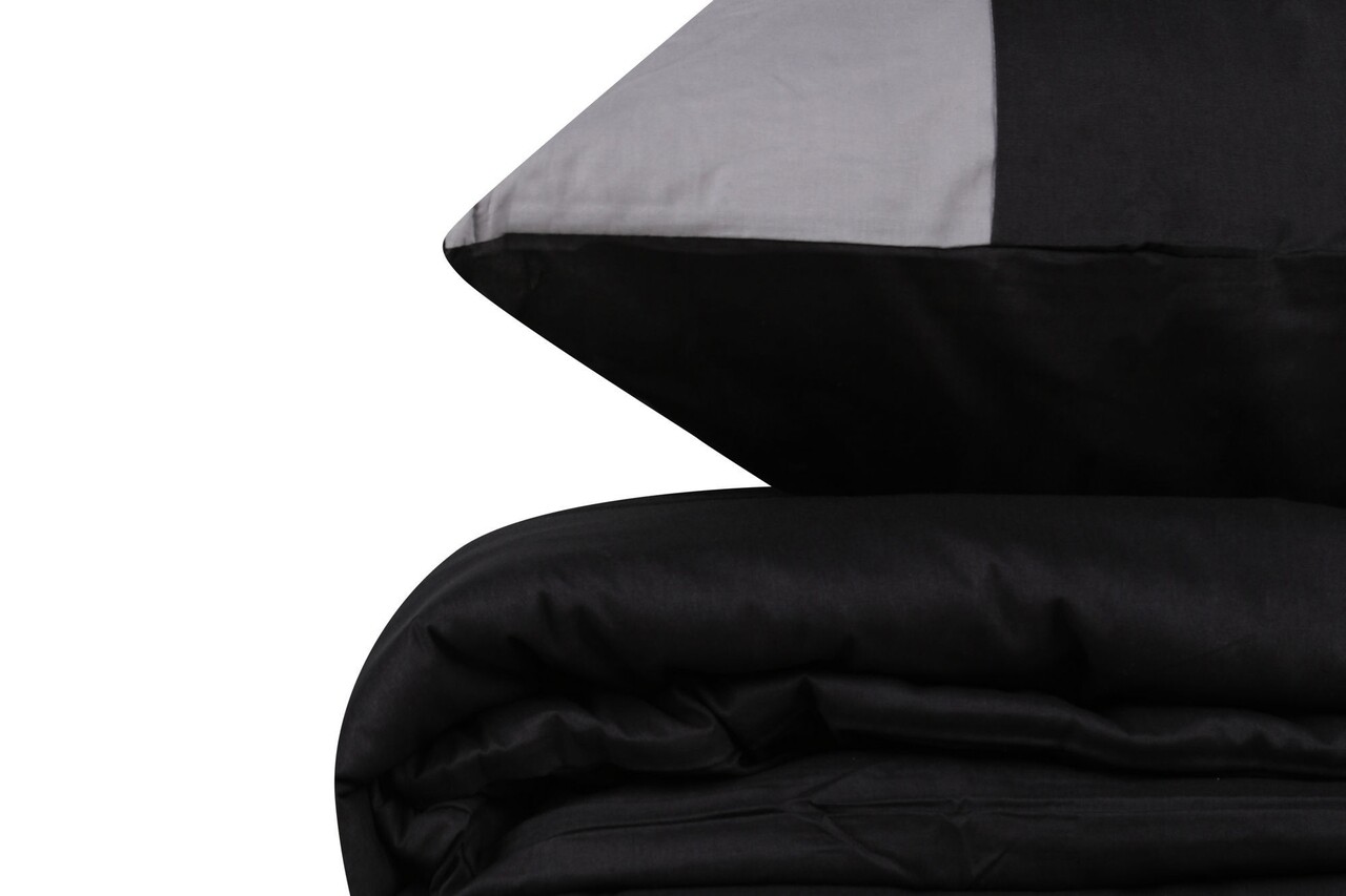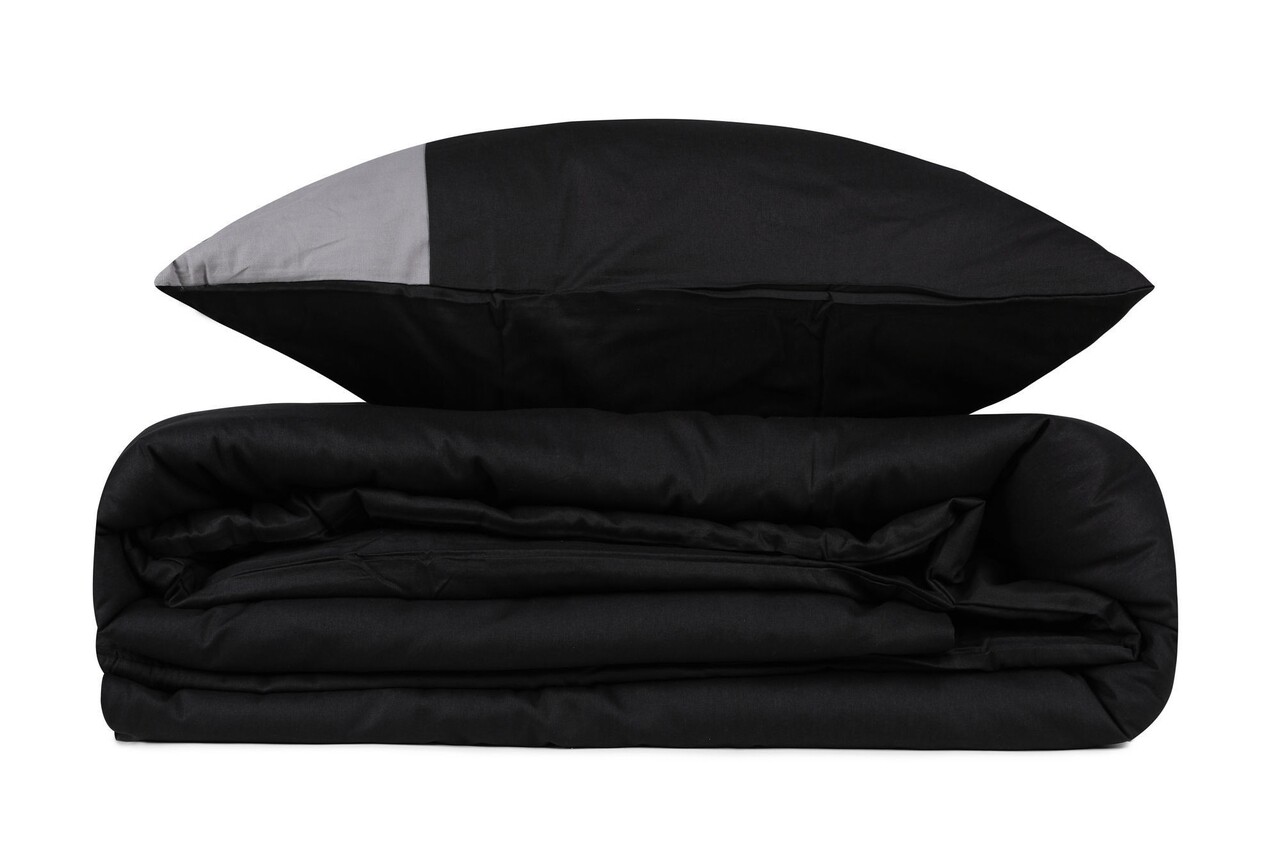 Lenjerie de pat dubla, 4 piese, 200x220 cm, 100% bumbac ranforce, Cotton Box, Plain, negru/gri