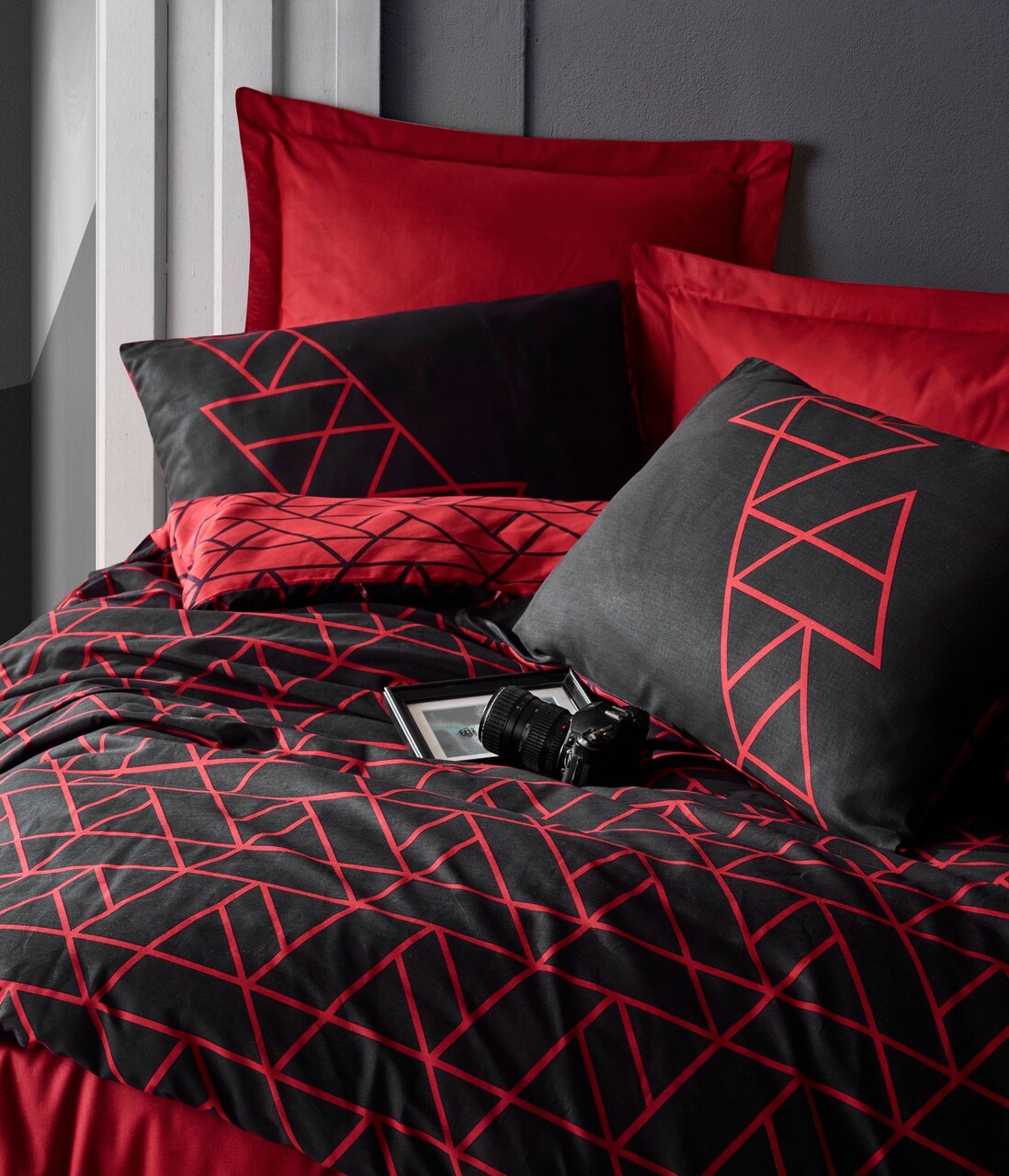 Lenjerie de pat dubla, 4 piese, 200x220 cm, 100% bumbac ranforce, Cotton Box, Shadow, rosu claret