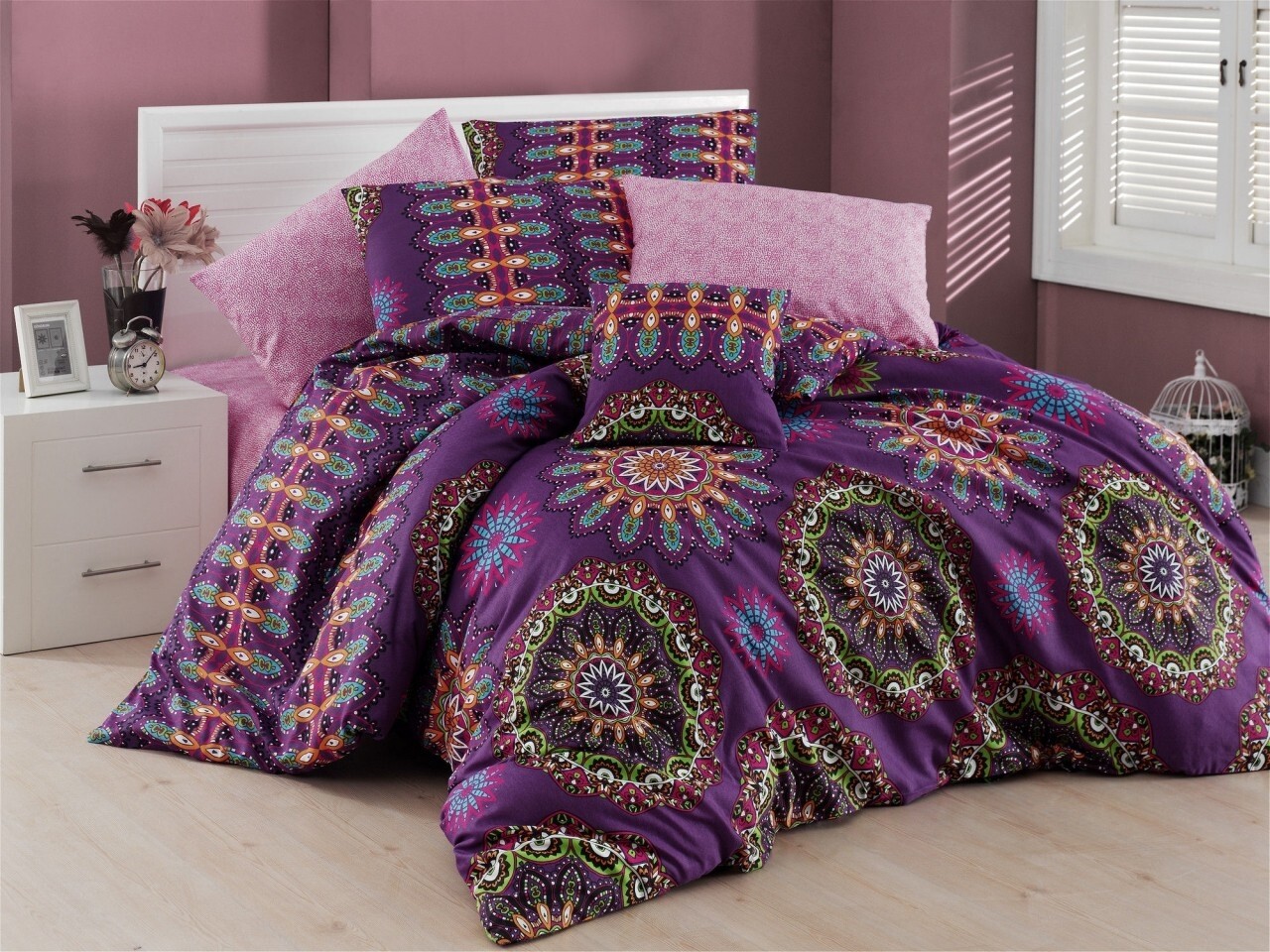 Lenjerie de pat dubla, 4 piese, amestec bumbac, Nazenin Home, Herra Brown, mov