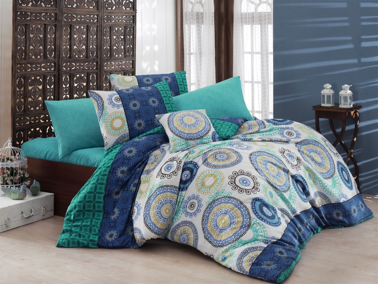 Lenjerie de pat dubla, 4 piese, amestec bumbac, Nazenin Home, Ringo, turcoaz