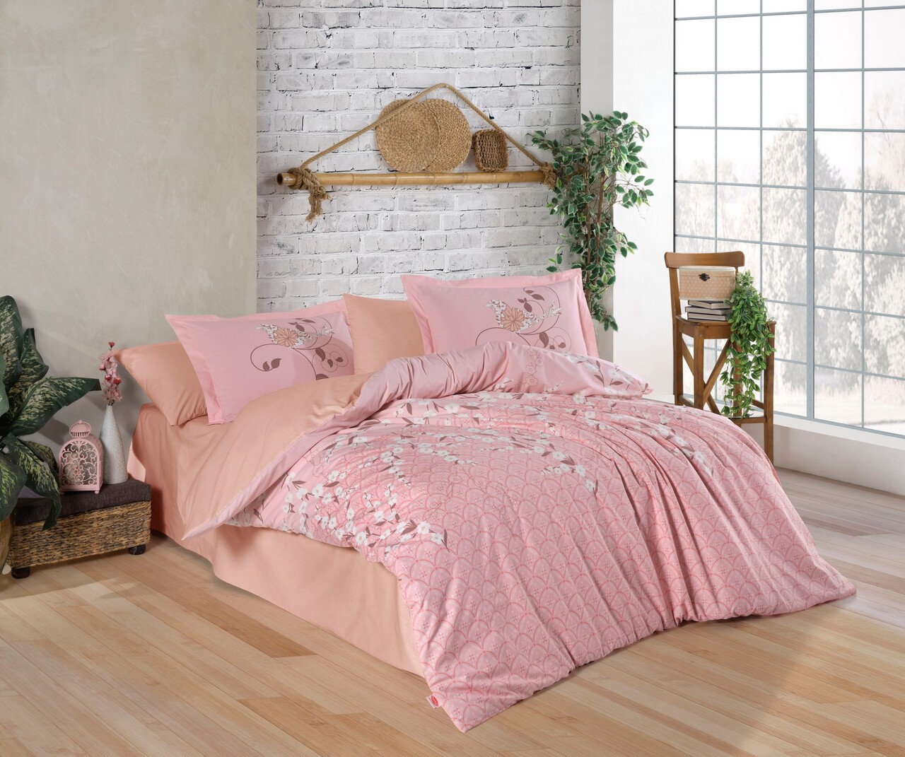 Lenjerie de pat dubla 4 piese, L'essentiel Maison, Missy, Roz pudra