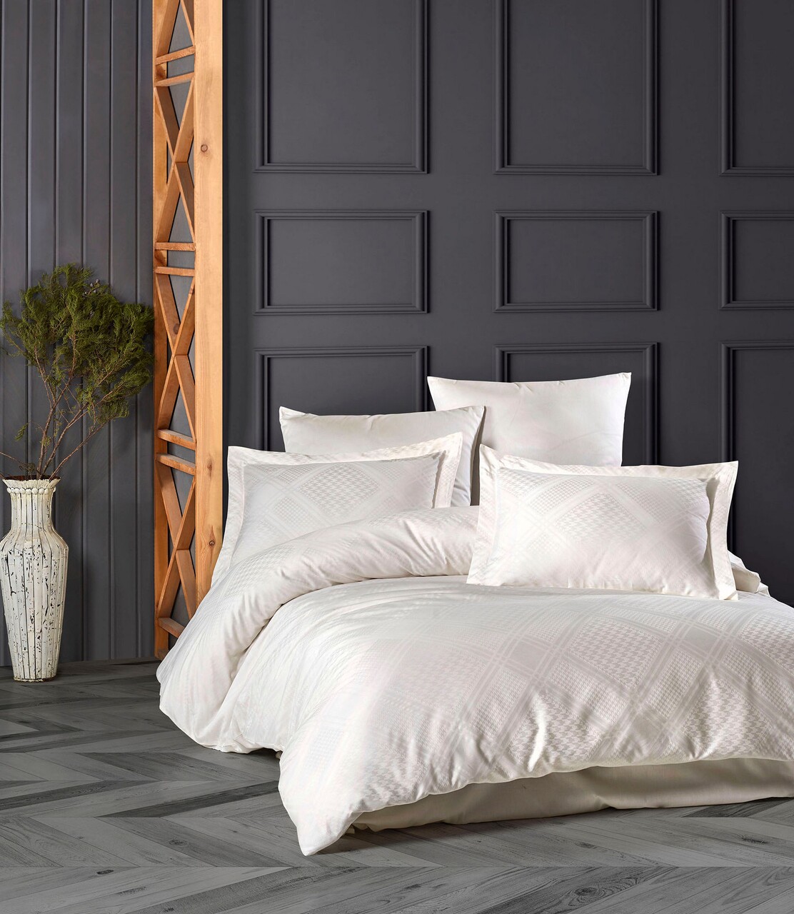 Lenjerie de pat dubla, 6 piese, 200x220 cm, 100% bumbac satinat, Saheser, Evans, crem