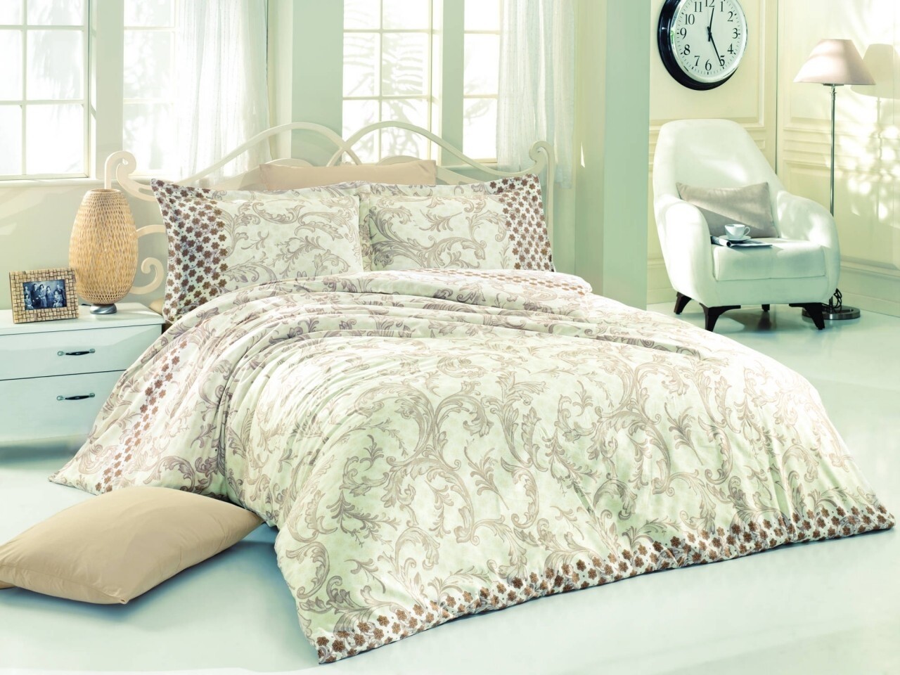 Lenjerie de pat dubla, 6 piese, 240x260 cm, 100% bumbac satinat, Nazenin Home, Simay, bej