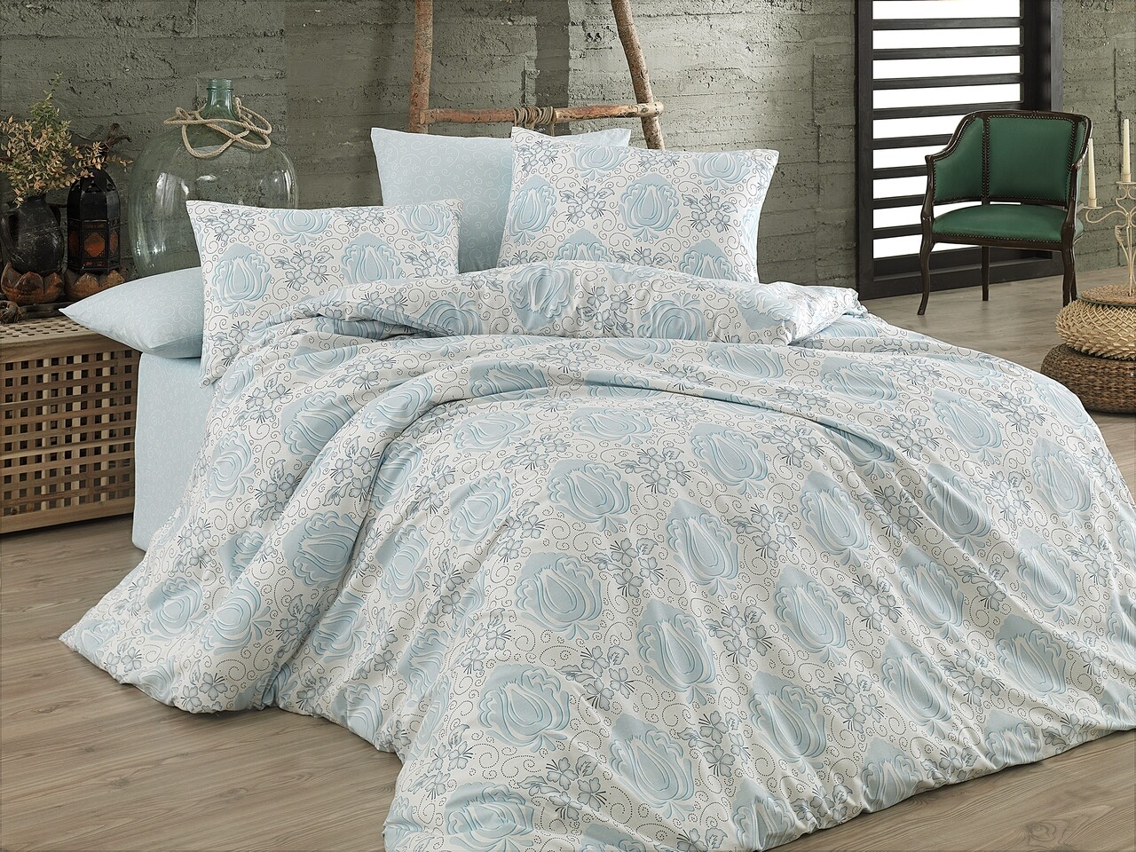 Lenjerie de pat dubla Alina, Majoli Home Collection, 4 piese, 200x220 cm, 100% bumbac ranforce, albastru