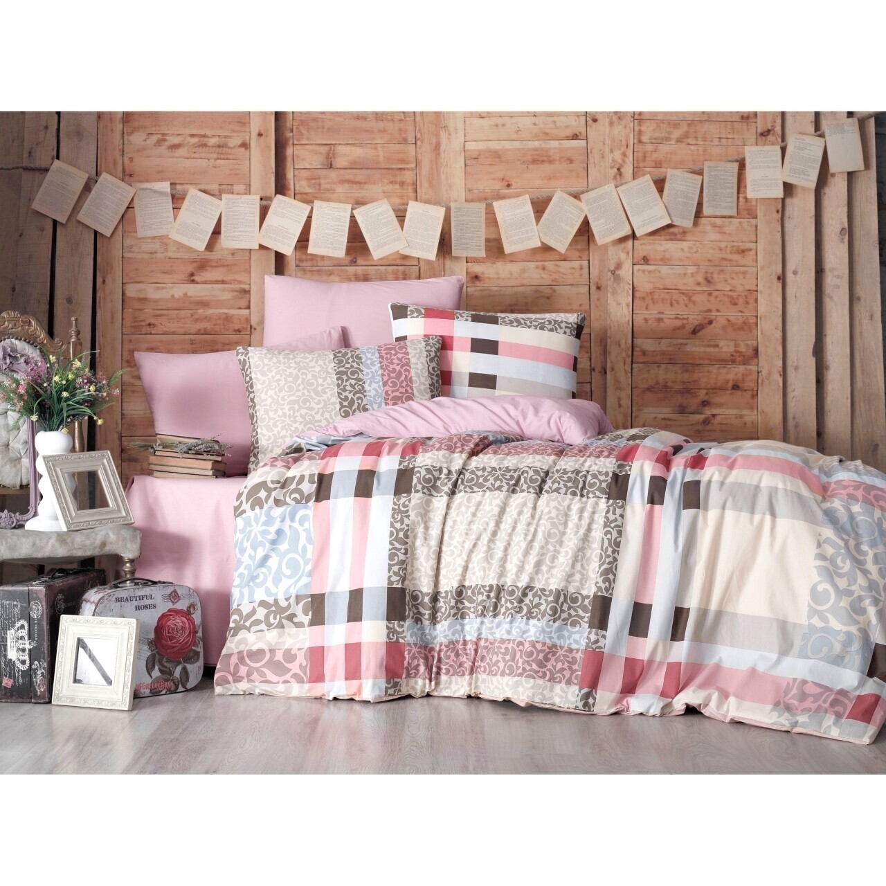 Lenjerie de pat dubla, Bande, Bedora, 4 piese, 220 x 240 cm, 100% bumbac, multicolor