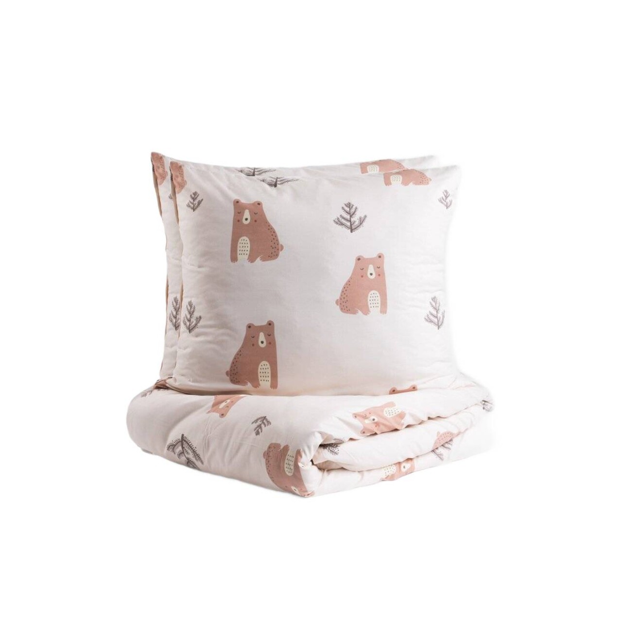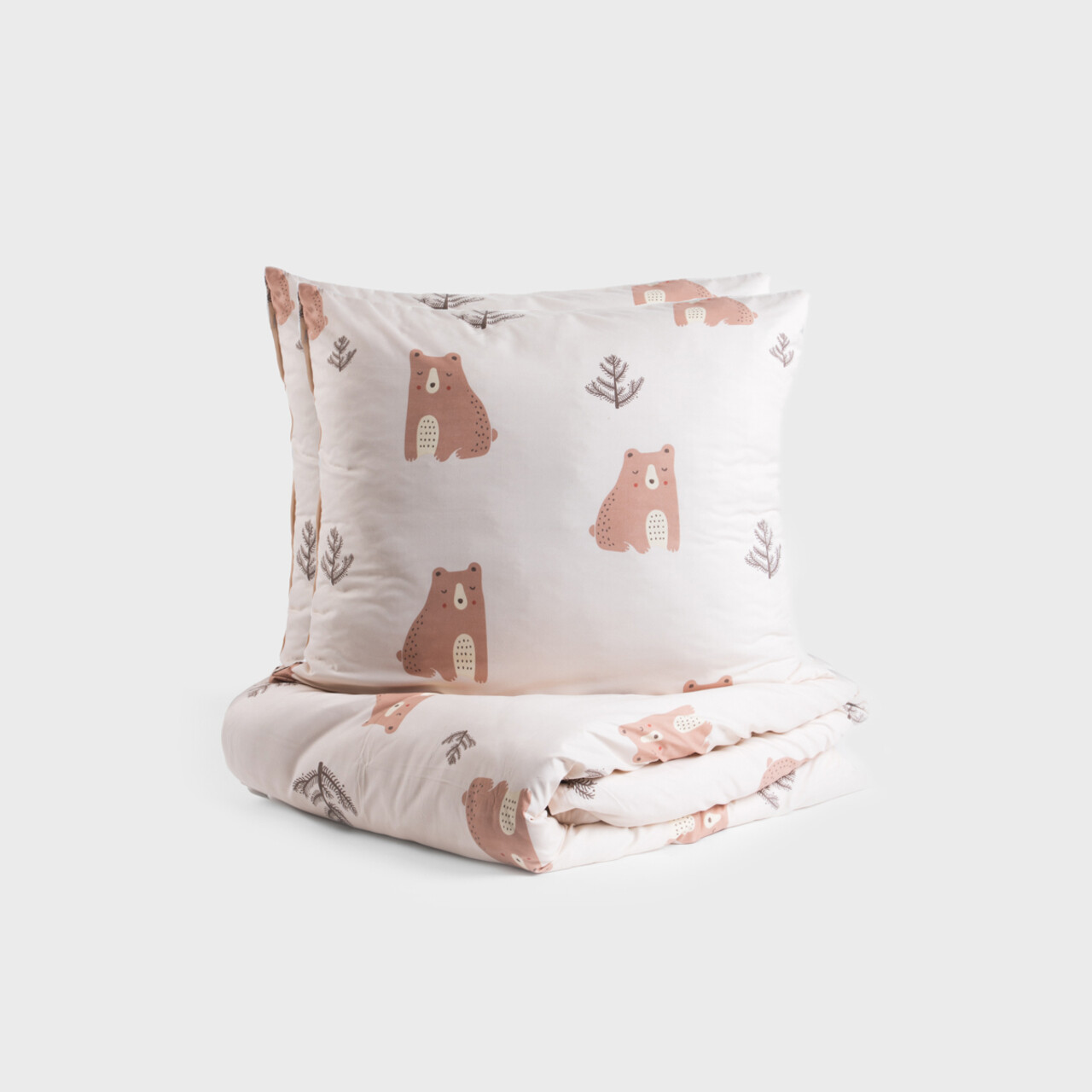 Setul BEARIE este format dintr-o husa de pilota cu dimensiunea 160x200 cm si doua fete de perna cu dimensiunea 70x80 cm.