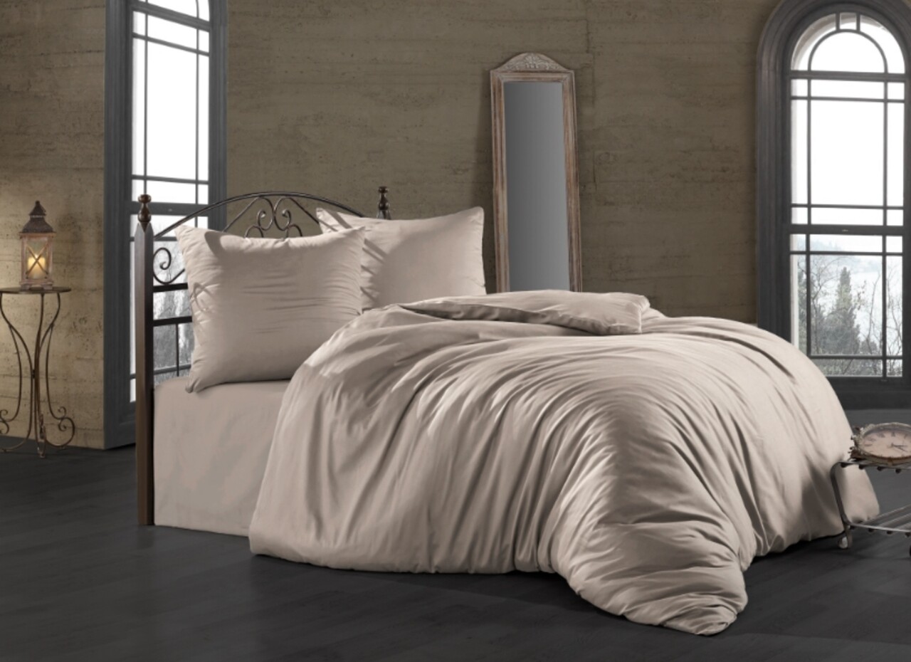 Lenjerie de pat dubla Camel Duz, Majoli Home Collection, 6 piese, 240x260 cm, bumbac satinat, camel cream