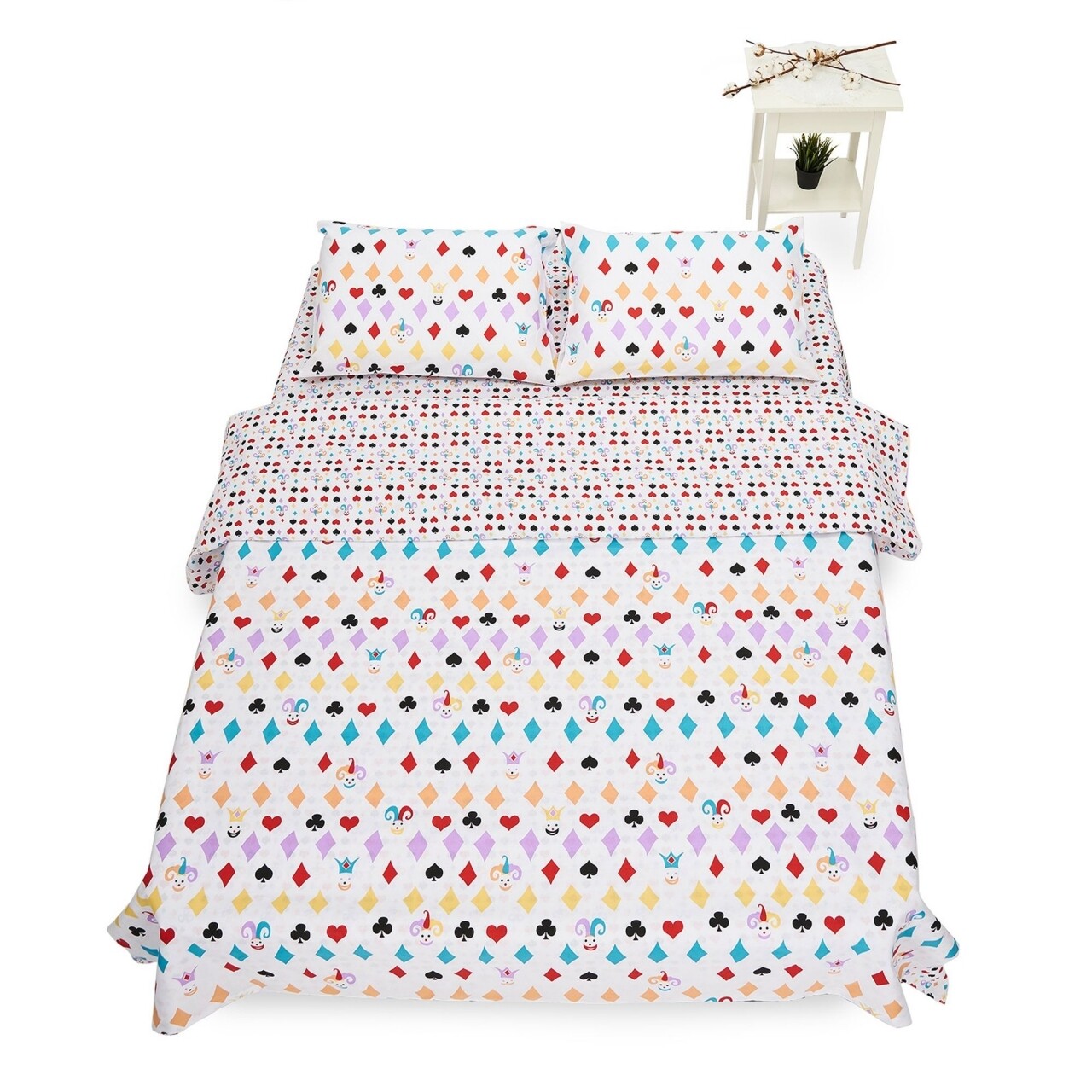 Amuzanta precum un joc de carti, lenjeria de pat Cards se remarca prin imprimeul sau ludic si vesel, fiind perfecta pentru serile in care te simti obosit. Materialul natural din care este realizata va contribui la confortul tau.
