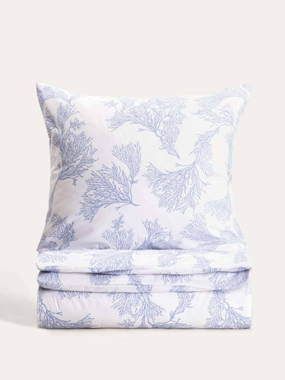 Lenjerie de pat dubla Coral, Homla, 160x200 cm, 3 piese, bumbac, alb/albastru