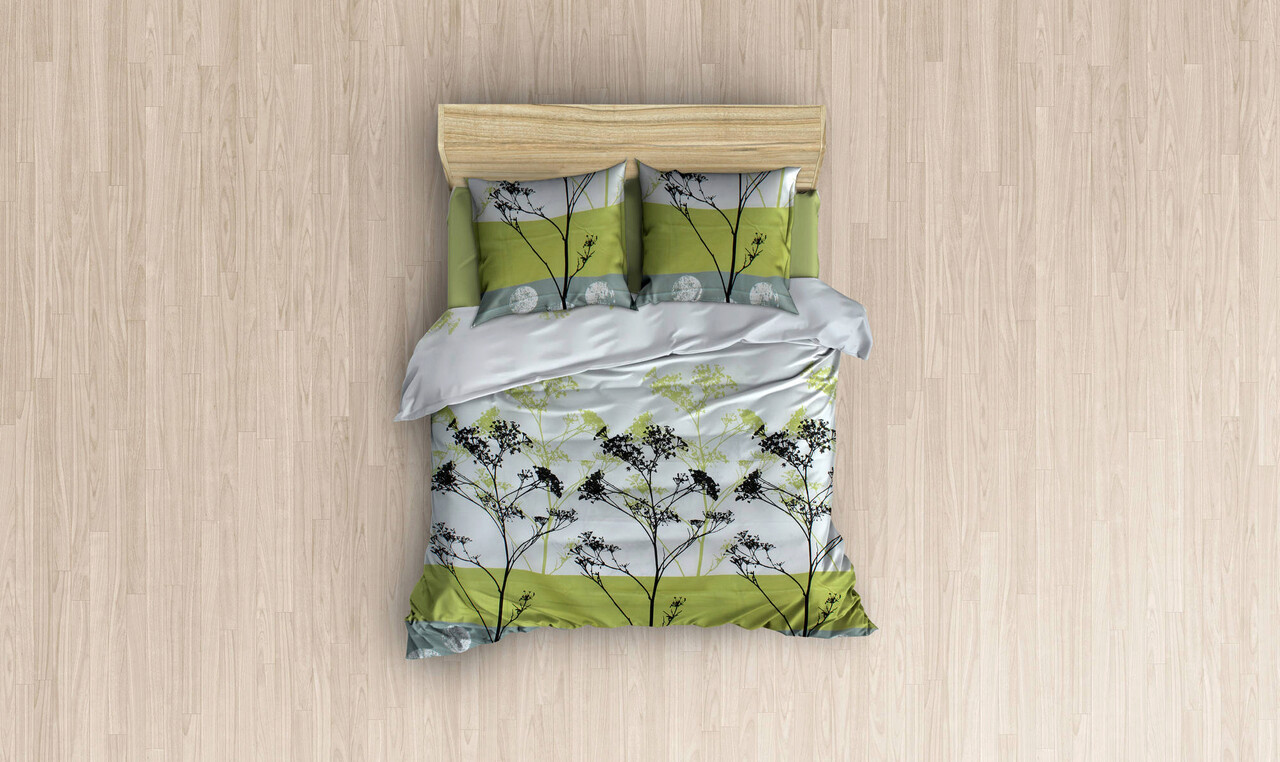 Lenjerie de pat dubla (DE), 3 piese, Blezza - Green v2, Victoria, 65% bumbac/35% poliester