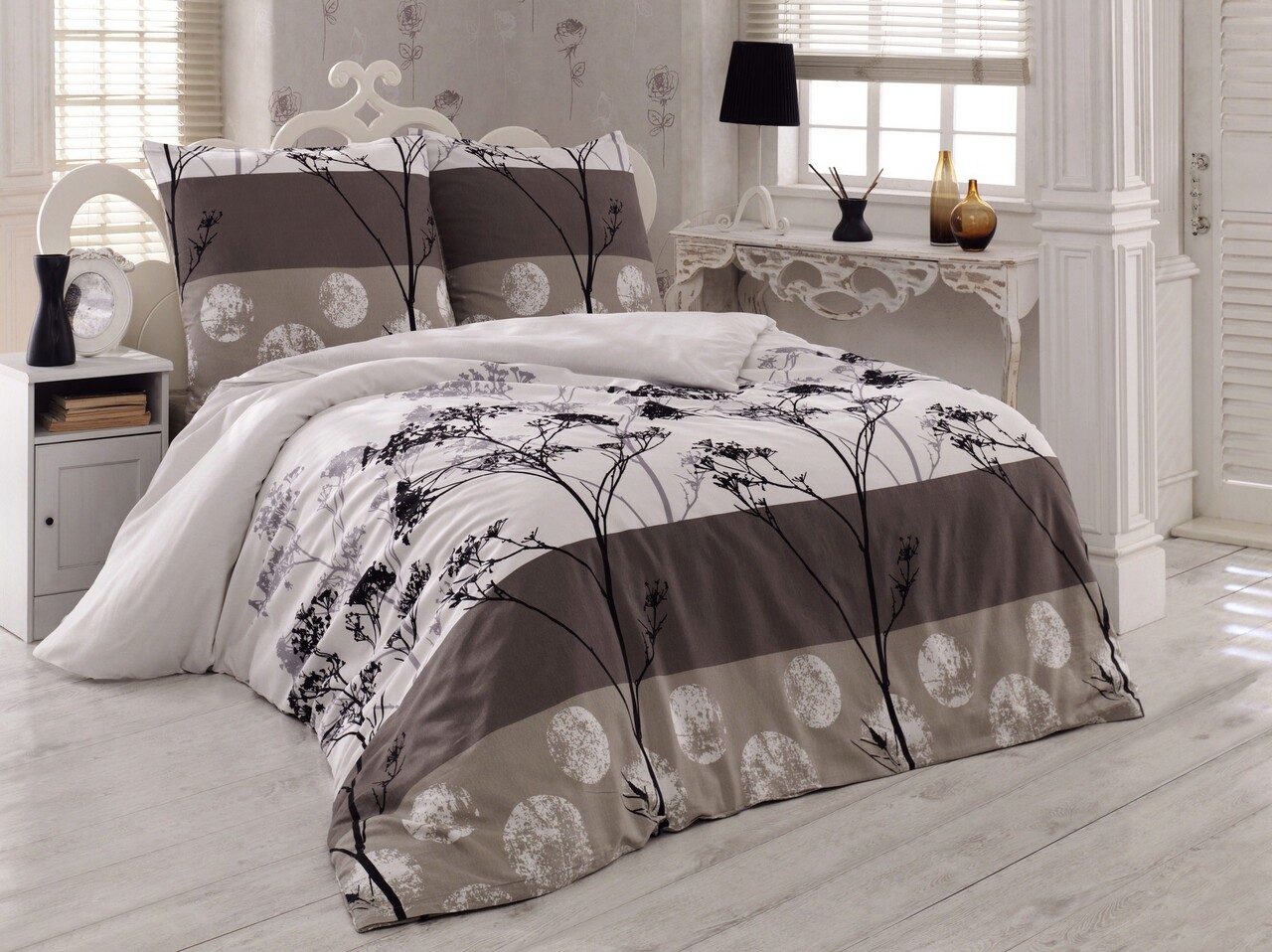 Lenjerie de pat dubla (DE), 3 piese, Blezza - Grey v2, Victoria, 65% bumbac/35% poliester