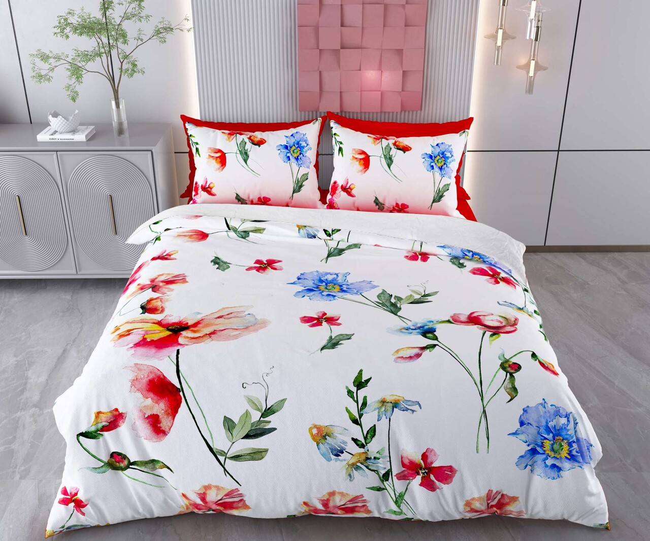Lenjerie de pat dubla (DE), 3 piese, L'essentiel Maison, Floser, Bumbac;Poliester, Alb / Roșu / Verde / Albastru