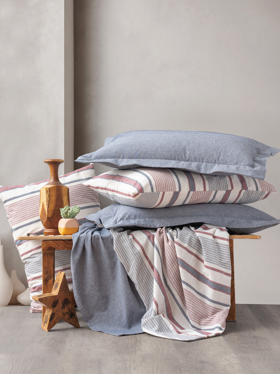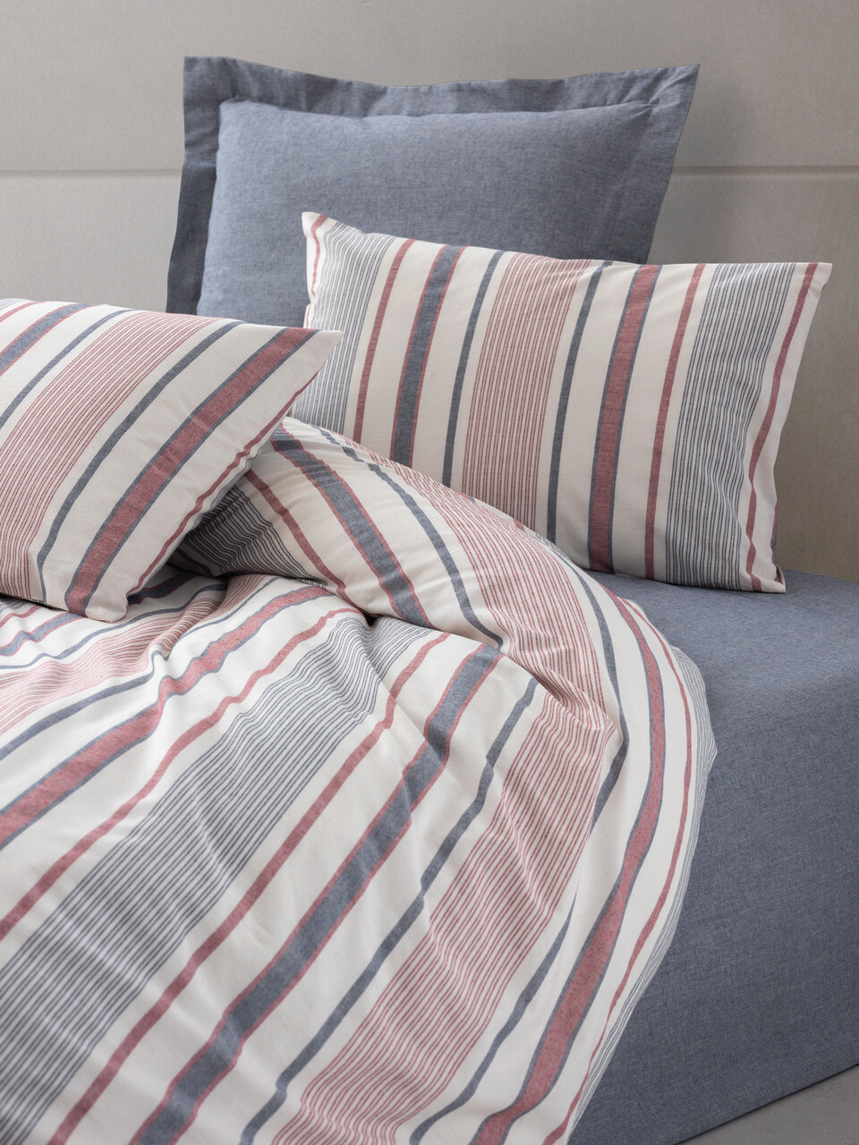 Lenjerie de pat dubla (DE), 3 piese, L'essentiel Maison, Duo, Albastru închis / Alb / Roz