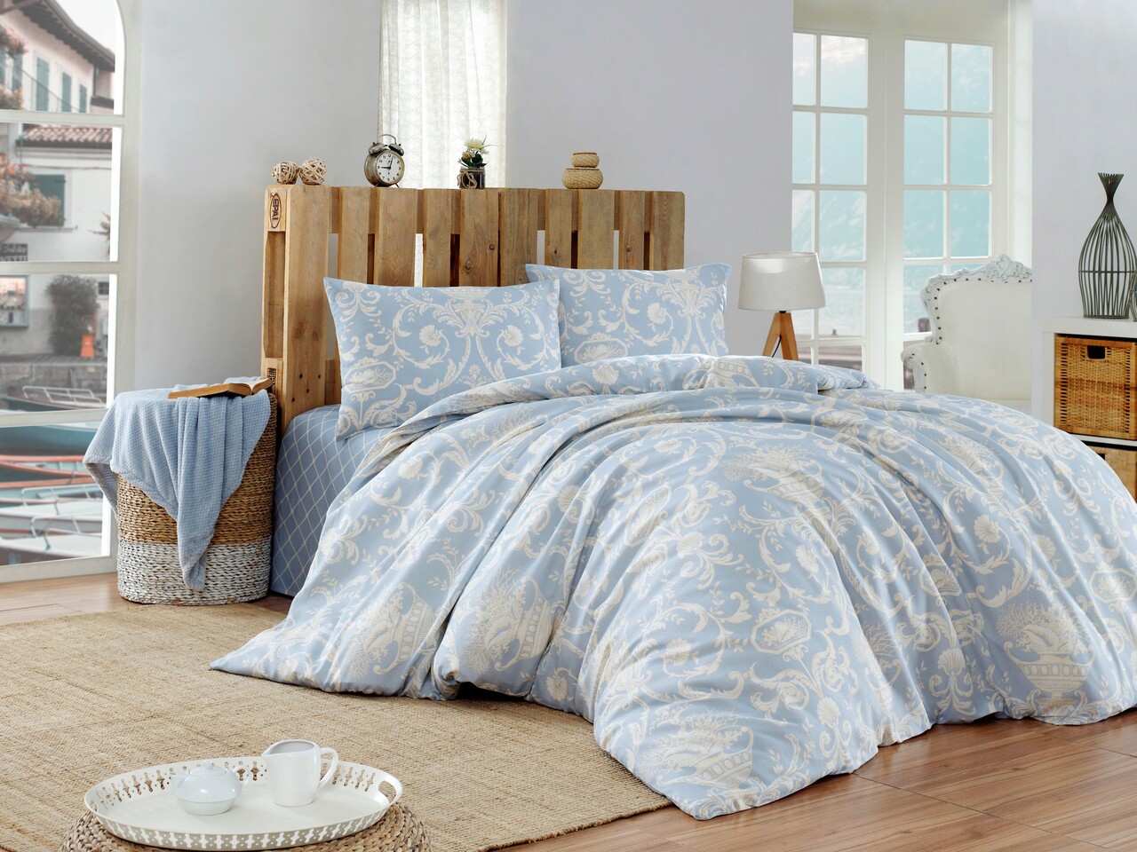 Lenjerie de pat dubla (DE), 3 piese, Tuval - Blue, EnLora Home, 65% bumbac/35% poliester