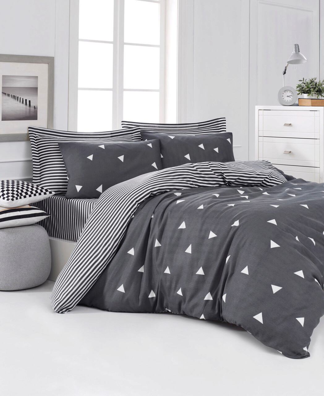 Lenjerie de pat dubla (DE), 3 piese, Üçgen - Grey, Eponj Home, 65% bumbac/35% poliester