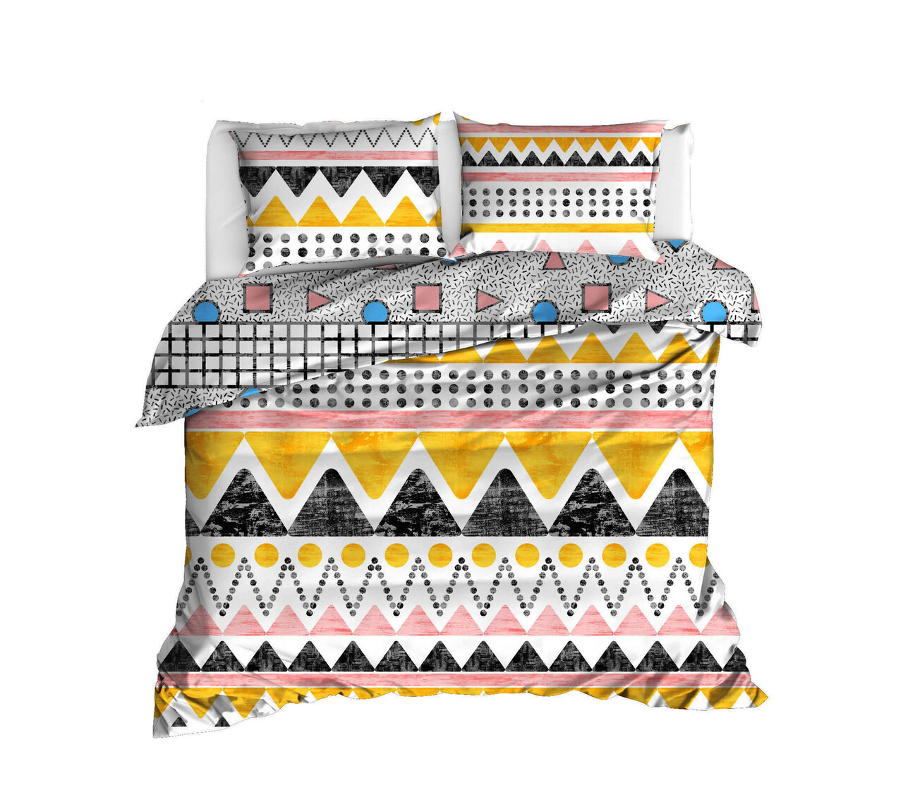 Lenjerie de pat dubla (DE), L'essentiel Maison, Bettina, Galben / Negru / Alb / Somon