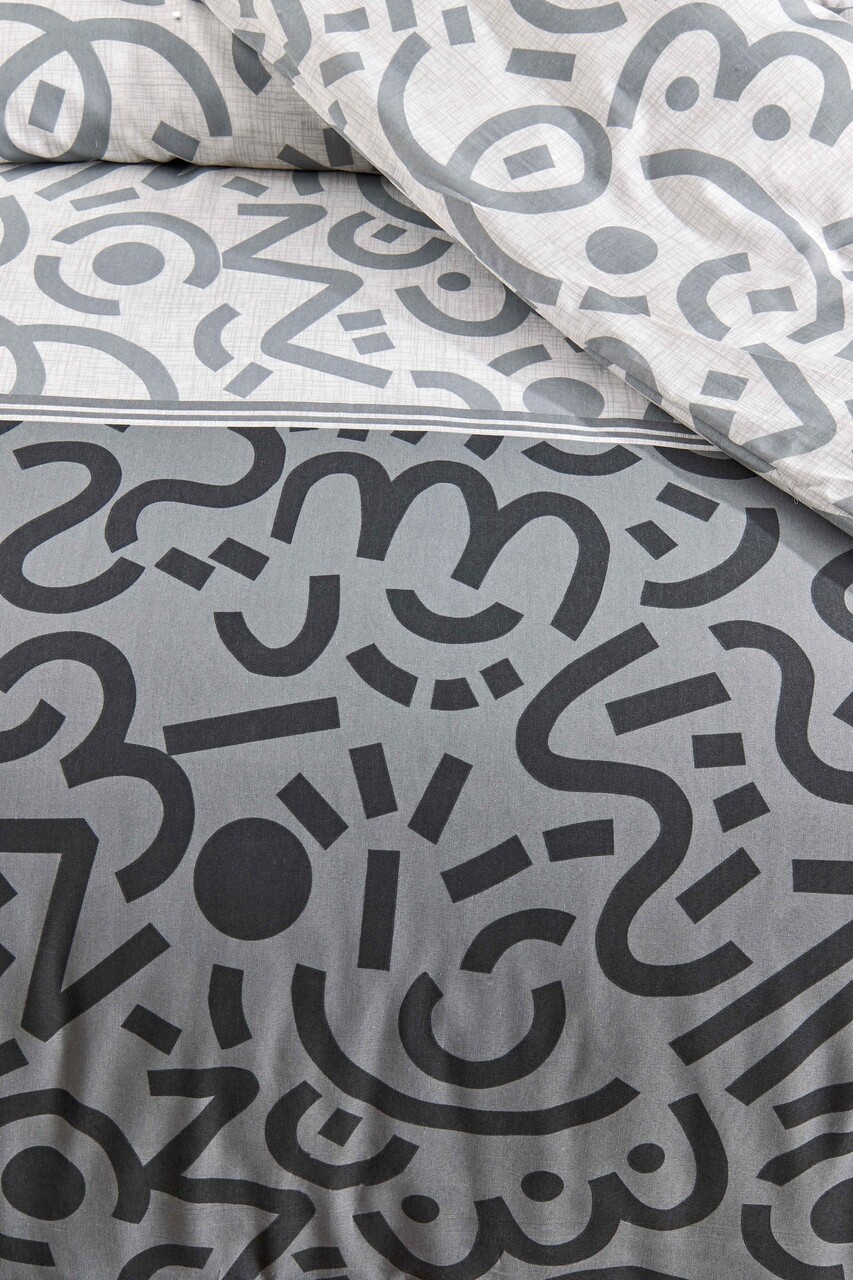 Lenjerie de pat dubla, Doodle - Black, Tabu Home, 65% bumbac/35% poliester