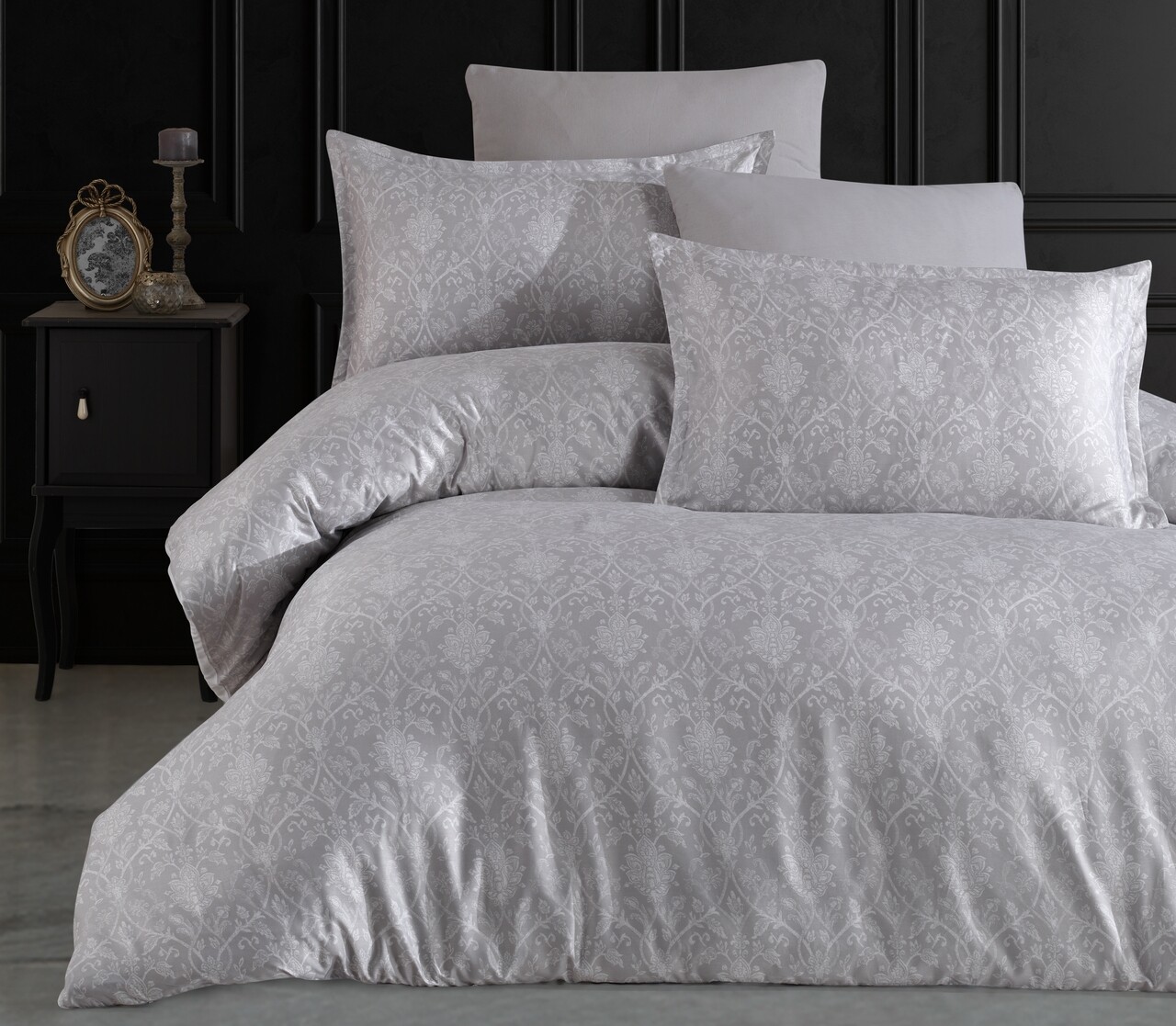 Lenjerie de pat dubla Elegance V1, Majoli Home Collection, 6 piese, 240x260 cm, bumbac satinat, gri