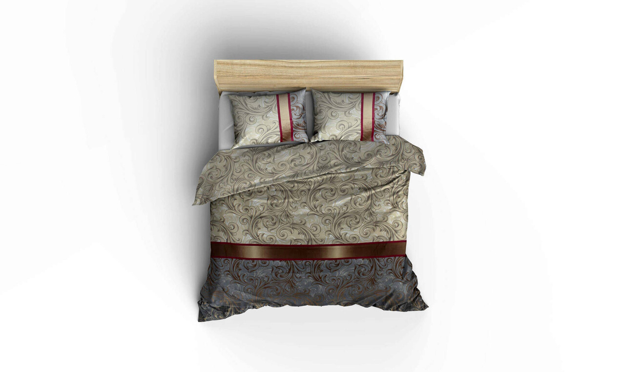 Lenjerie de pat dubla (ES), 2 piese, L'essentiel Maison, Hürrem v2, Crem / Negru / Gri / Roșu Claret / Alb