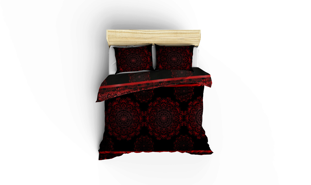 Lenjerie de pat dubla (ES), 2 piese, Şehri-Ala - Red, Eponj Home, 65% bumbac/35% poliester