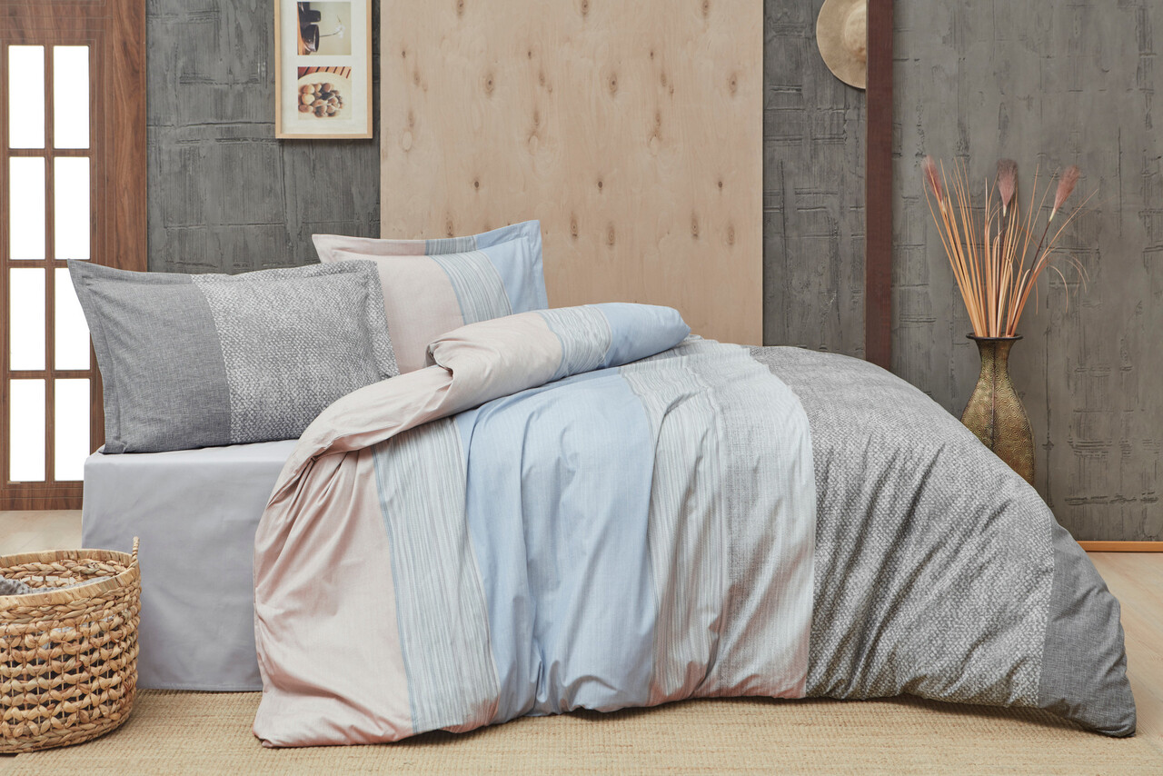 Lenjerie de pat dubla (ES), L'essentiel Maison, Dimlight, Gri / Albastru / Pudră