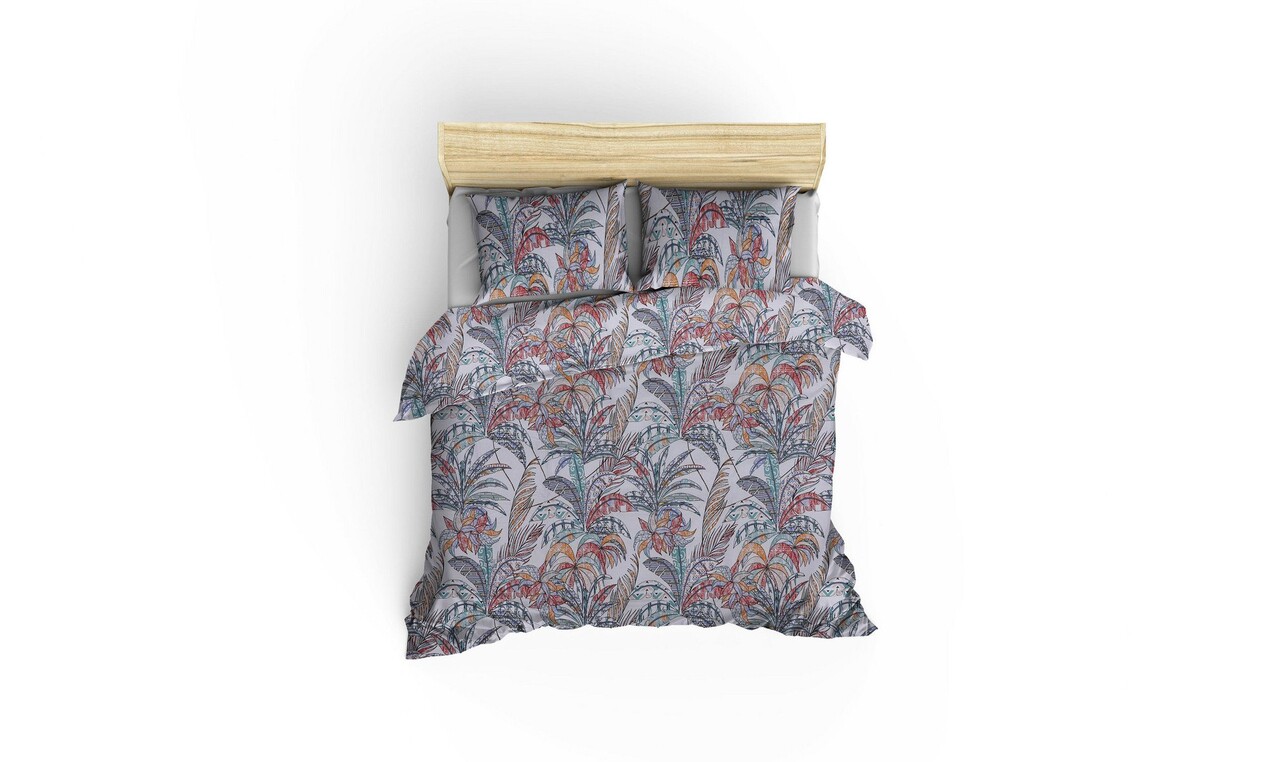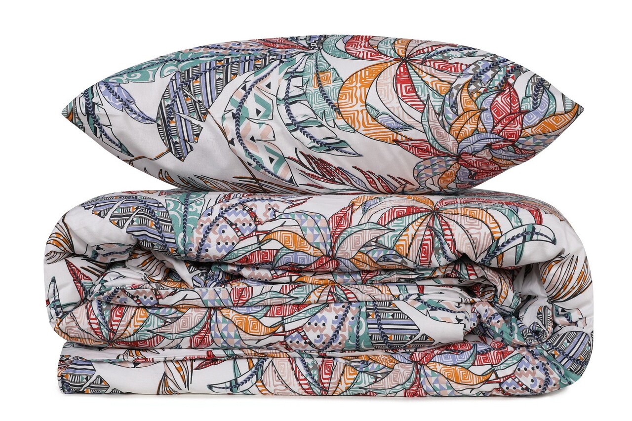 Lenjerie de pat dubla (ES), L'essentiel Maison, Palm, White / Brick Red / Blue