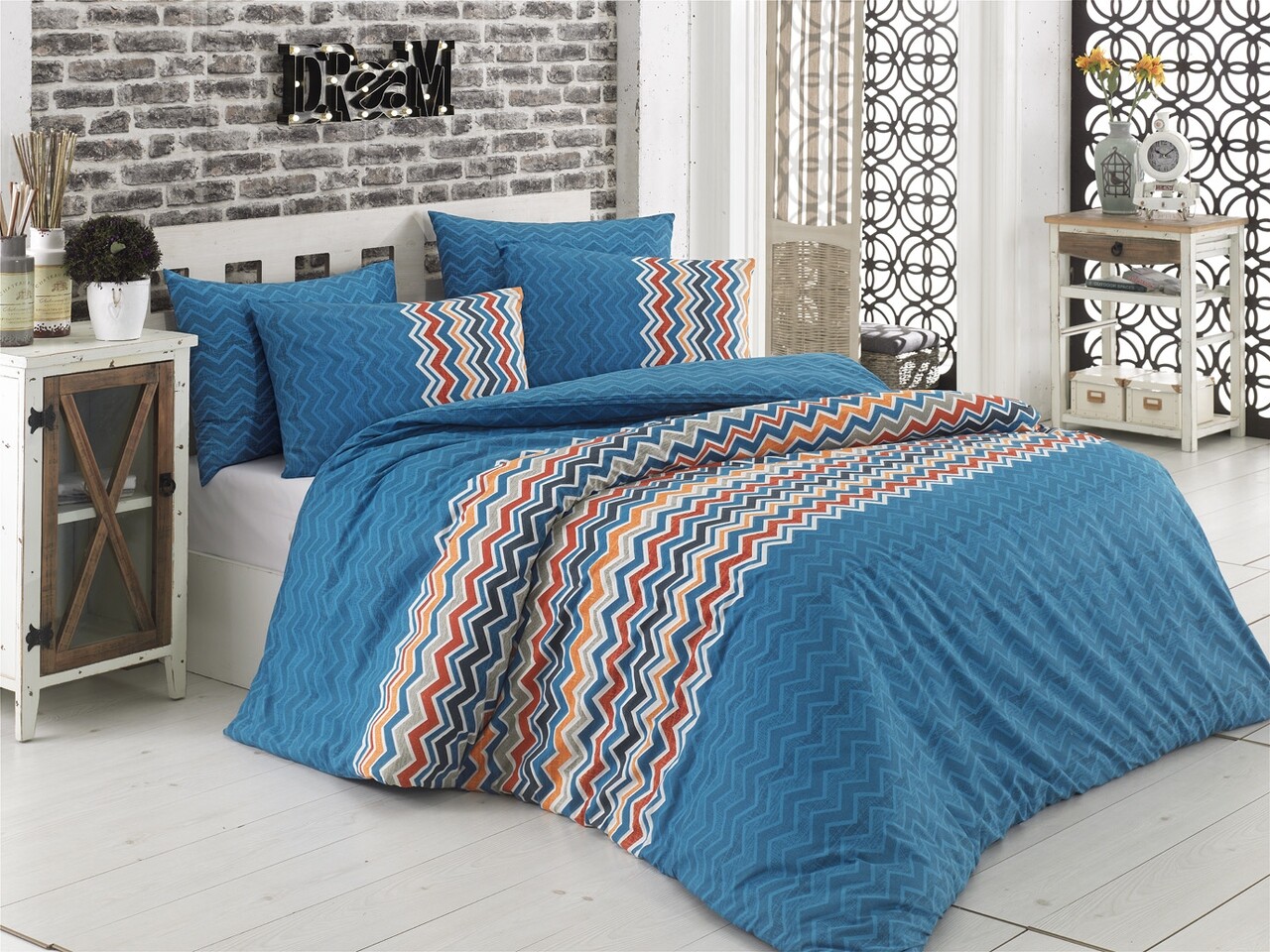 Lenjerie de pat dubla Essentiel, Majoli Home Collection, 4 piese, 200x220 cm, 100% bumbac ranforce, multicolor