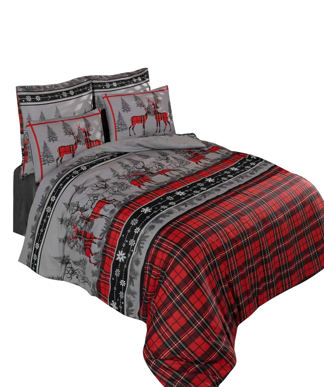 Lenjerie de pat dubla (EU) (IT), 3 piese, L'essentiel Maison, Christmas, Roșu / Gri / Negru